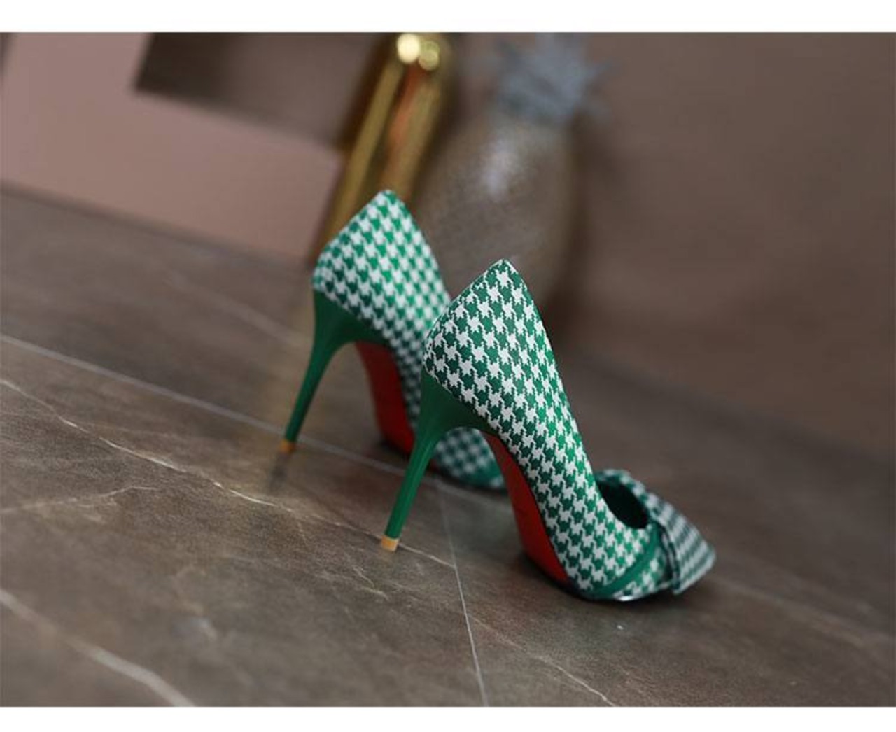 大人可愛い千鳥柄パンプスです。
