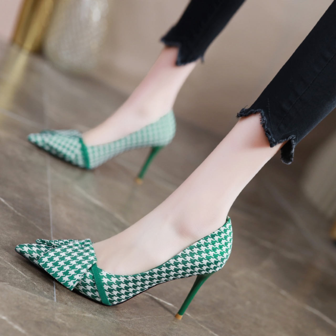 シューズ 靴 くつ クツ パンプス レディースシューズ ヒール ハイヒール ピンヒール 8cmヒール 9cmヒール ポインテッドトゥ リボン PU かわいい 大人可愛い きれいめ シンプル カジュアル 大人 上品 おしゃれ お洒落 フォーマル エレガント きちんと感 大人っぽい 女っぽ セクシー モダン こなれ感 柄 千鳥格子 春 夏 謝恩会 結婚式 二次会 披露宴 冠婚葬祭 オフィス ビジネス OL 通勤 学生 デート お出かけ 休日 パーティー デイリー 普段使い スタイル 高見え 格上げ モテ 定番