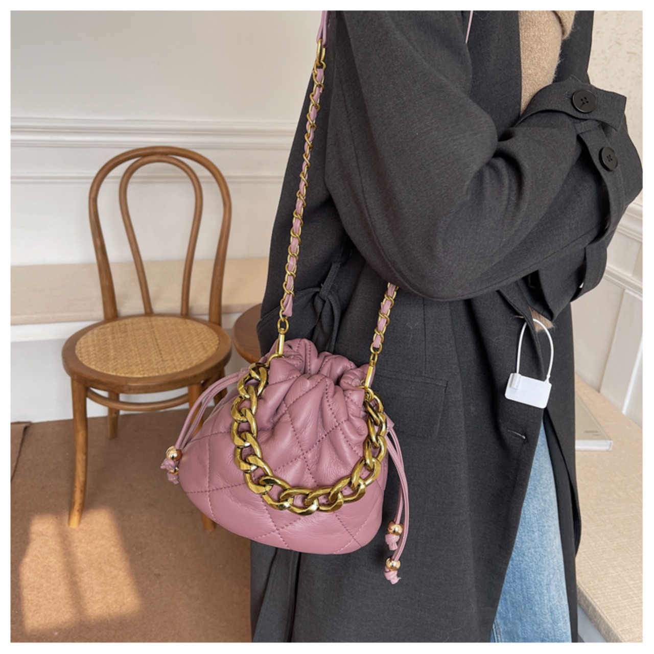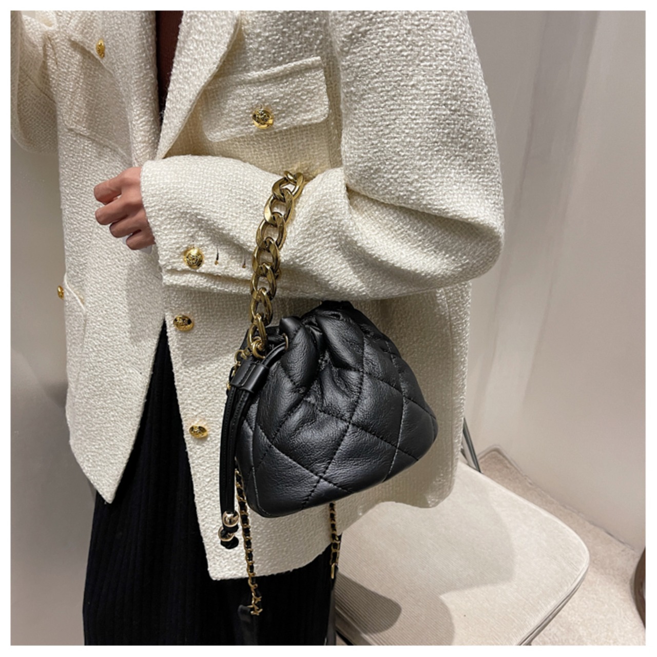 キルティング素材とゴールドの持ち手が高見え効果も。