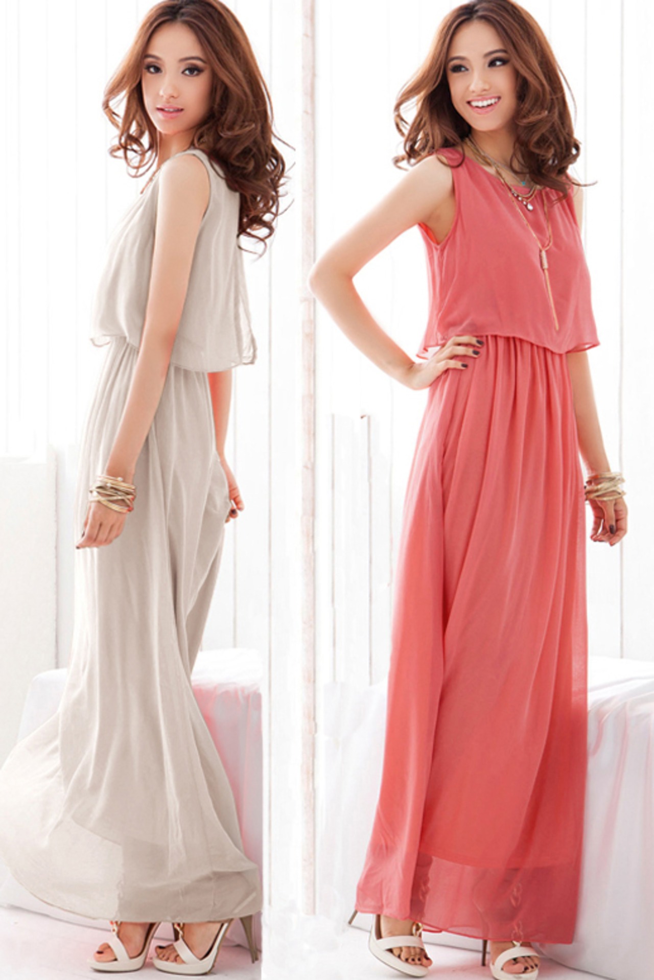 ワンピース ノースリーブワンピ ロング丈 ノースリーブ ラウンドネック フレア 切り替えデザイン シフォン 透け感 薄手 無地 大人可愛い きれいめ シンプル 上品 おしゃれ フェミニン さわやか 大人女子 こなれ感 存在感 抜け感 ナチュラル 華やか 夏 10代 20代 30代 40代 レディース OL 学生 デート お出かけ 公園デビュー 女子会 パーティー リゾート 旅行 海 プール 高原 ホテル レストラン 普段使い スタイルアップ モテ 体系カバー