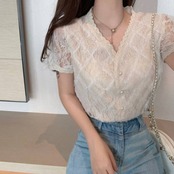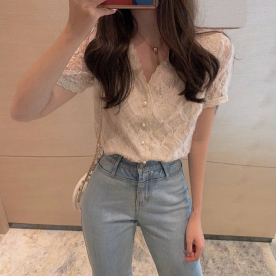 トップス シャツ ブラウス 袖あり 半袖 Vネック レース 前開き 透け感 ポリエステル かわいい 大人可愛い きれいめ シンプル カジュアル 上品 おしゃれ お洒落 レトロ 大人可愛い 大人女子 こなれ感 ラブリー キュート ガーリー エレガント とろみ感 抜け感 フェミニン 柄 春 夏 10代 20代 30代 40代 レディース 女性用 学生 通学 デート お出かけ 女子会 休日 着回し 普段使い モテ S M L XL オフホワイト アプリコット