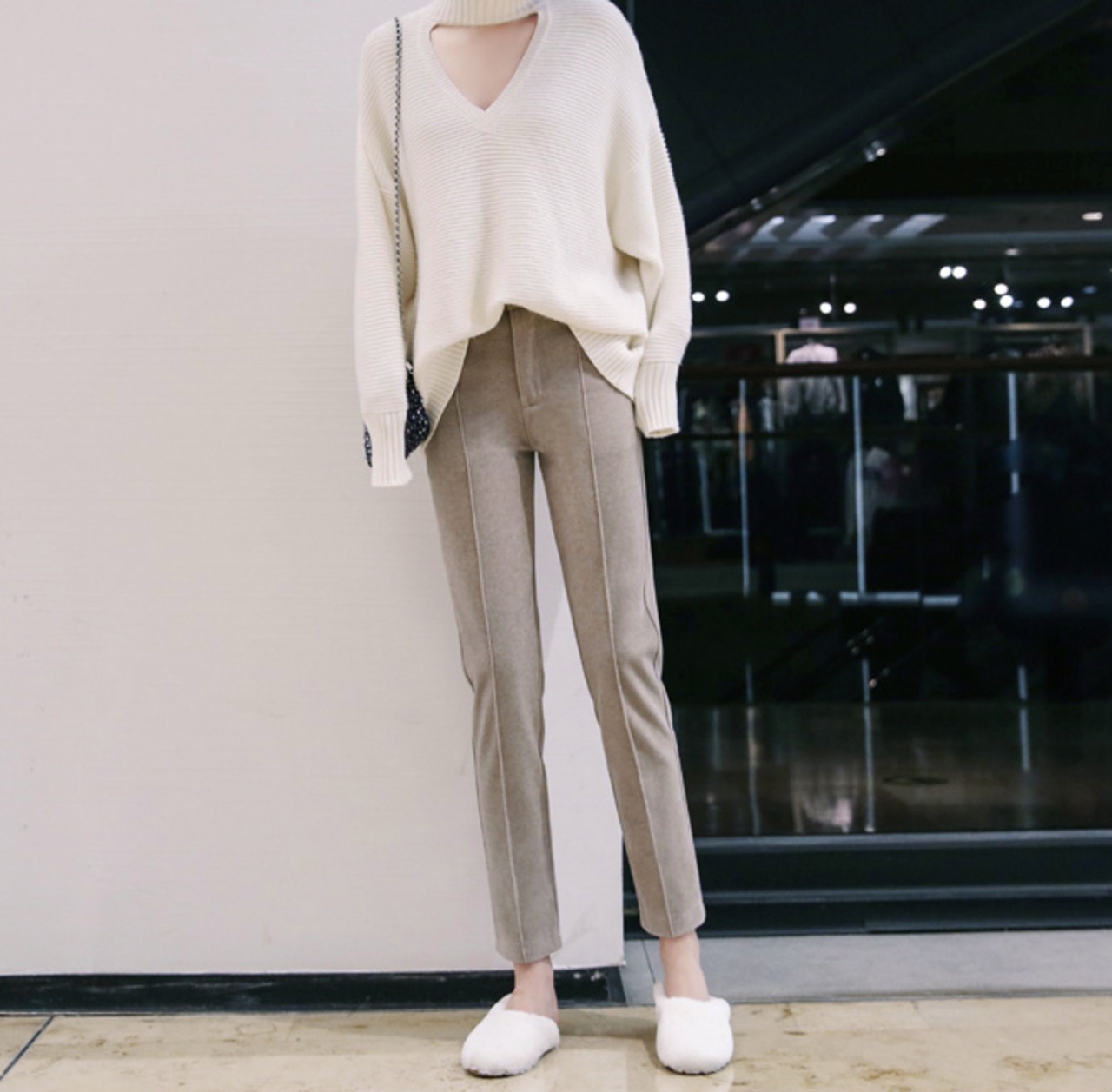 アンクル丈で、足首をほっそりと綺麗に見せてくれます。