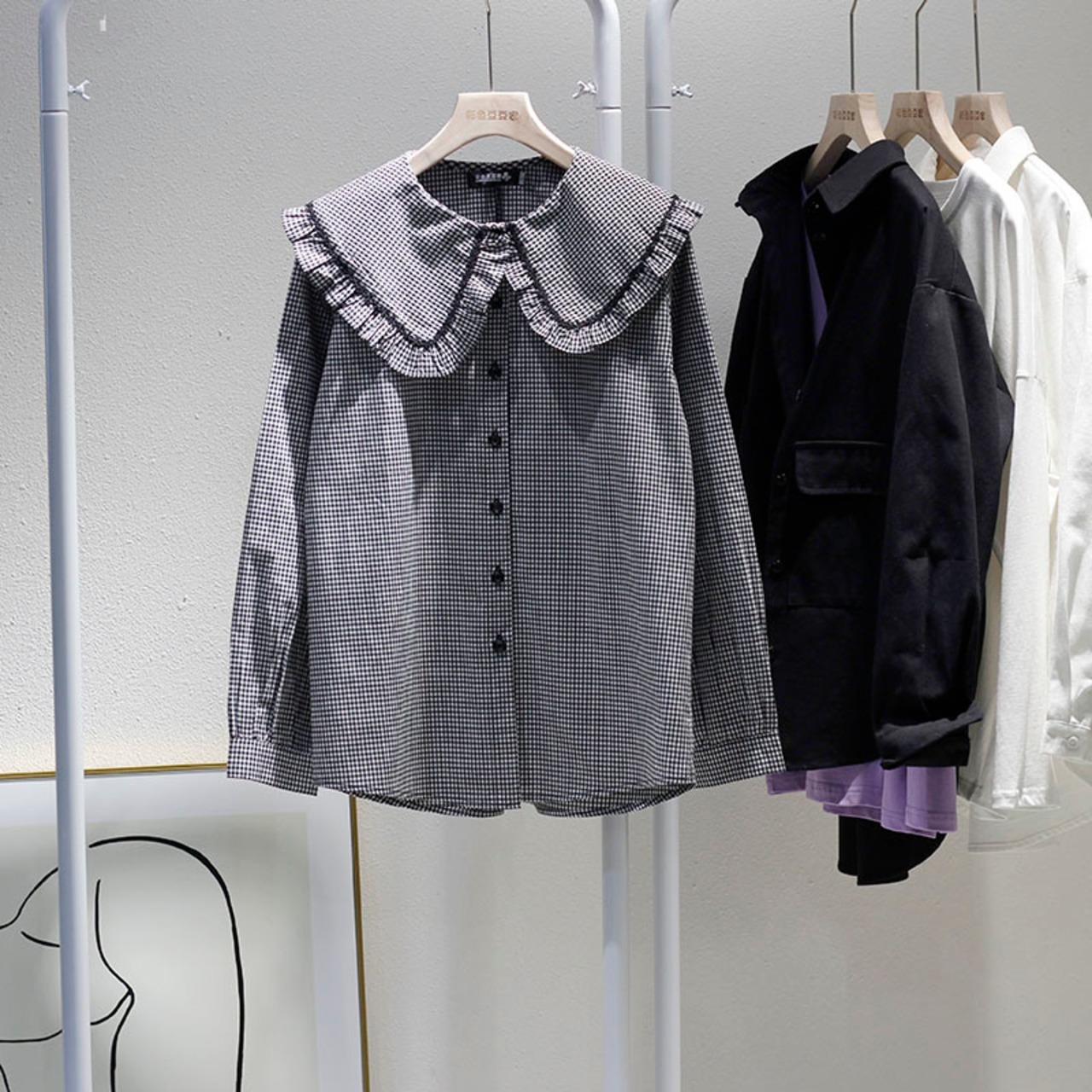 トップス シャツ ブラウス 袖あり 長袖 ラウンドネック 襟付き 大人可愛い きれいめ シンプル カジュアル 大人 上品 おしゃれ お洒落 大人女子 こなれ感 ラフ チェック ギンガムチェック チェック柄 春 夏 秋 冬 オールシーズン シーズンレス 2022 2023 10代 20代 30代 40代 50代 60代 レディース 女性用 OL 通勤 学生 通学 デート お出かけ 休日 重ね着 L XL 2XL 黒 ブラック