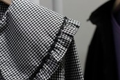 カラーについたさりげないフリルとパイピングがより一層キュートな雰囲気に。