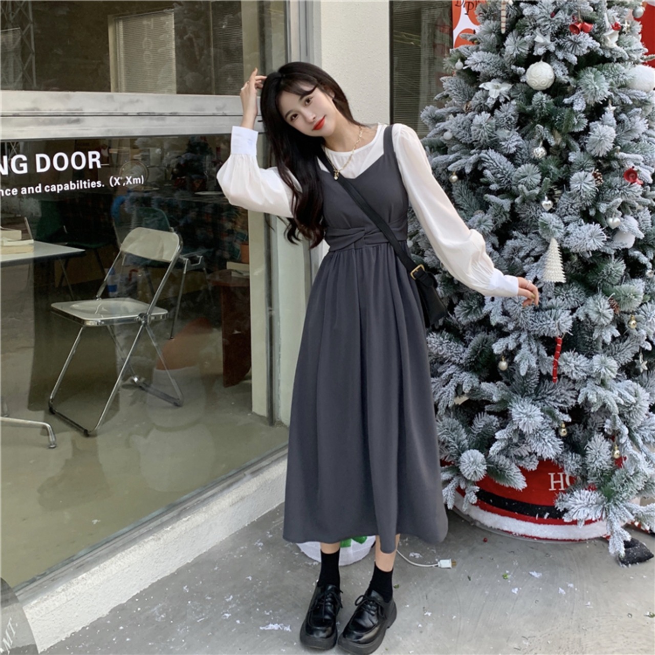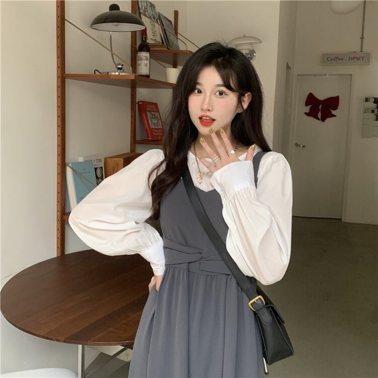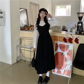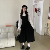 トップス ワンピース セットアップ 白トップス ジャンパースカート 膝下 ミモレ ミモレ丈 袖あり 長袖 Vネック ラウンドネック フレア セミフレア ウエストマーク 2点セット ツーピース 大人可愛い カジュアル おしゃれ お洒落 ラブリー キュート ガーリー 無地 春 夏 秋 冬 オールシーズン シーズンレス 2022 2023 10代 20代 レディース 女性用 ママ キッズ 女の子 学生 通学 デート お出かけ 女子会 休日 コーデ スタイル 楽ちん モテ フリーサイズ 黒 ブラック 灰色 グレー