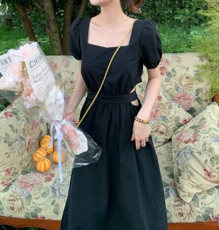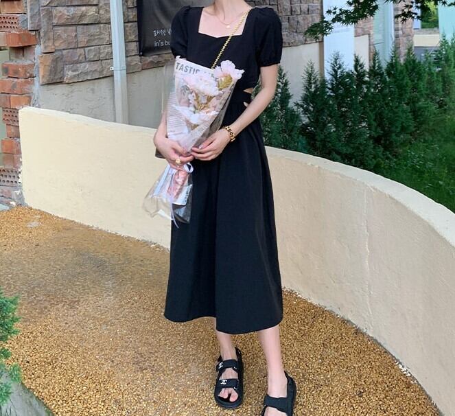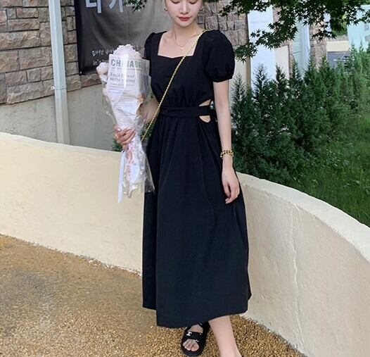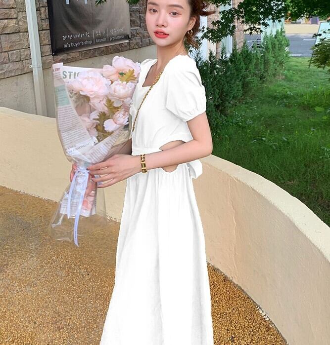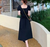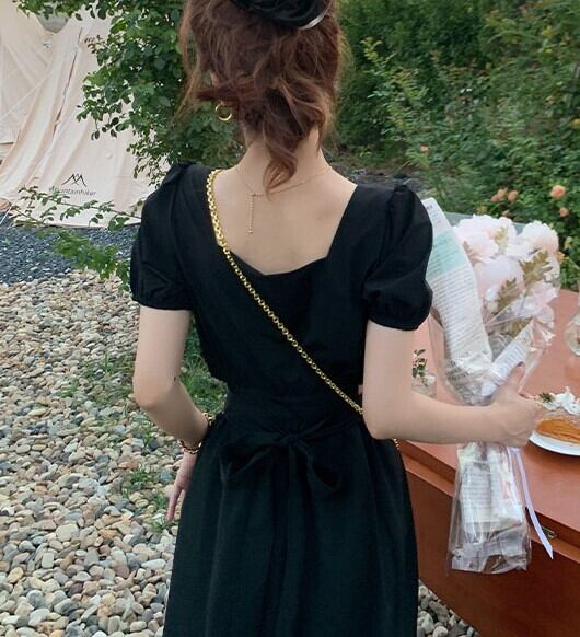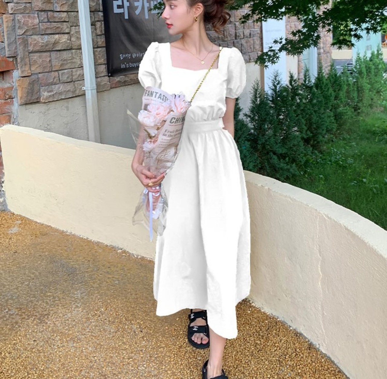 ワンピース フレアワンピース ワンピドレス 膝下 ミモレ ミモレ丈 7分丈 袖あり パフスリーブ スクエアネック フレア セミフレア Aライン ウエストマーク ウエストリボン バックリボン かわいい 大人可愛い 大人 おしゃれ お洒落 大人可愛い 大人女子 ラブリー キュート ガーリー 主役級 存在感 無地 春 夏 10代 20代 レディース 女性用 デート お出かけ 女子会 お泊まり 休日 パーティー イベント リゾート 旅行 ホテル ガーデン レストラン モテ S M L 白 ホワイト 黒 ブラック
