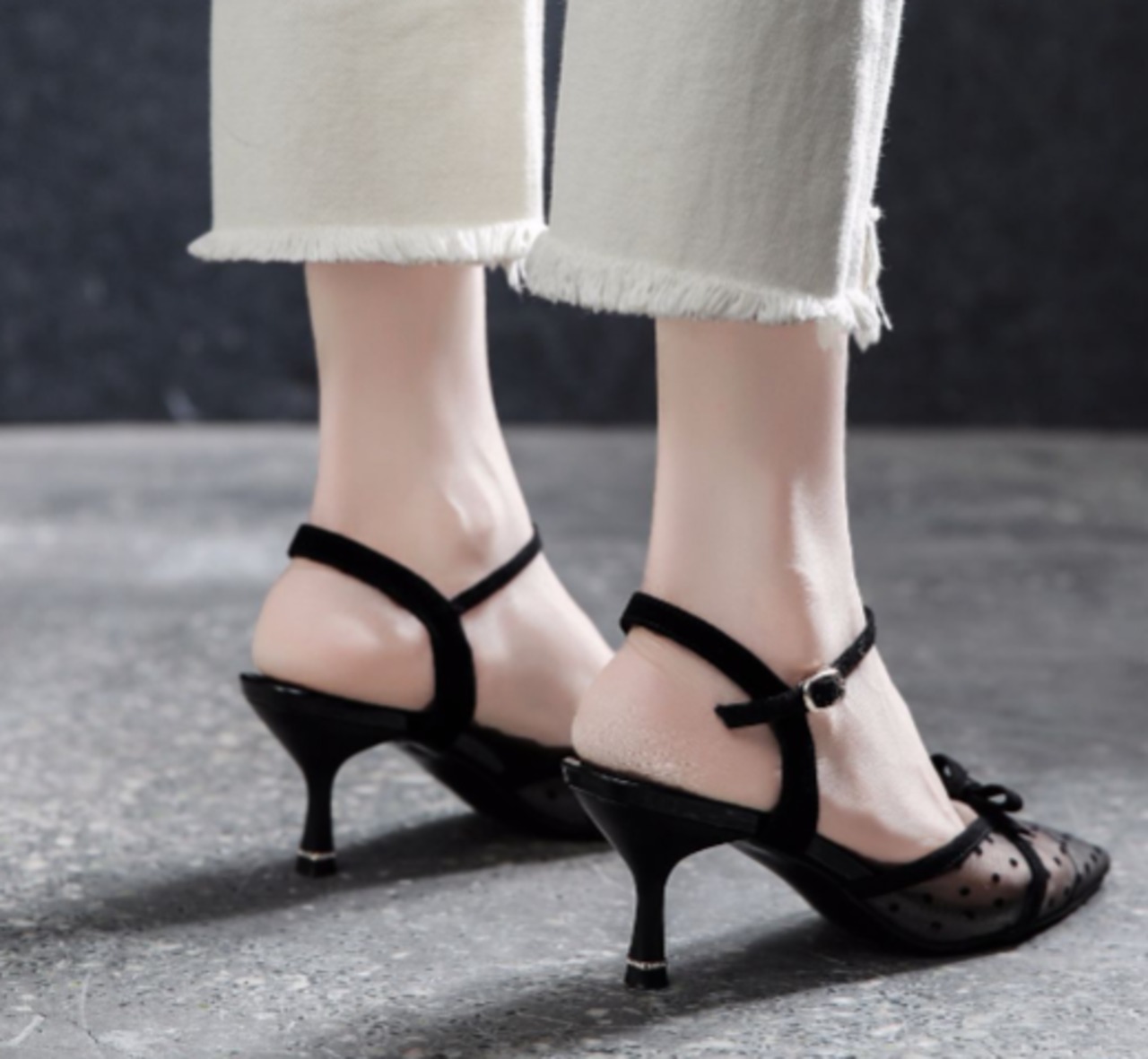 さりげないリボンで可愛さを演出し、ストラップで歩きやすさも兼ね備えています。