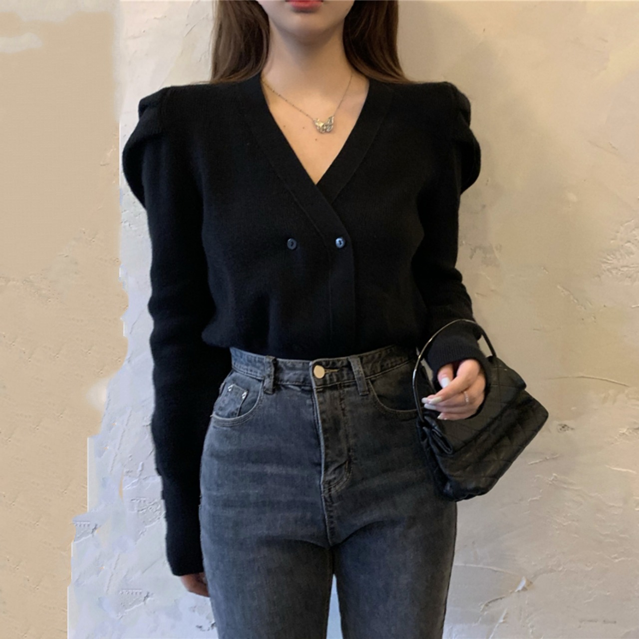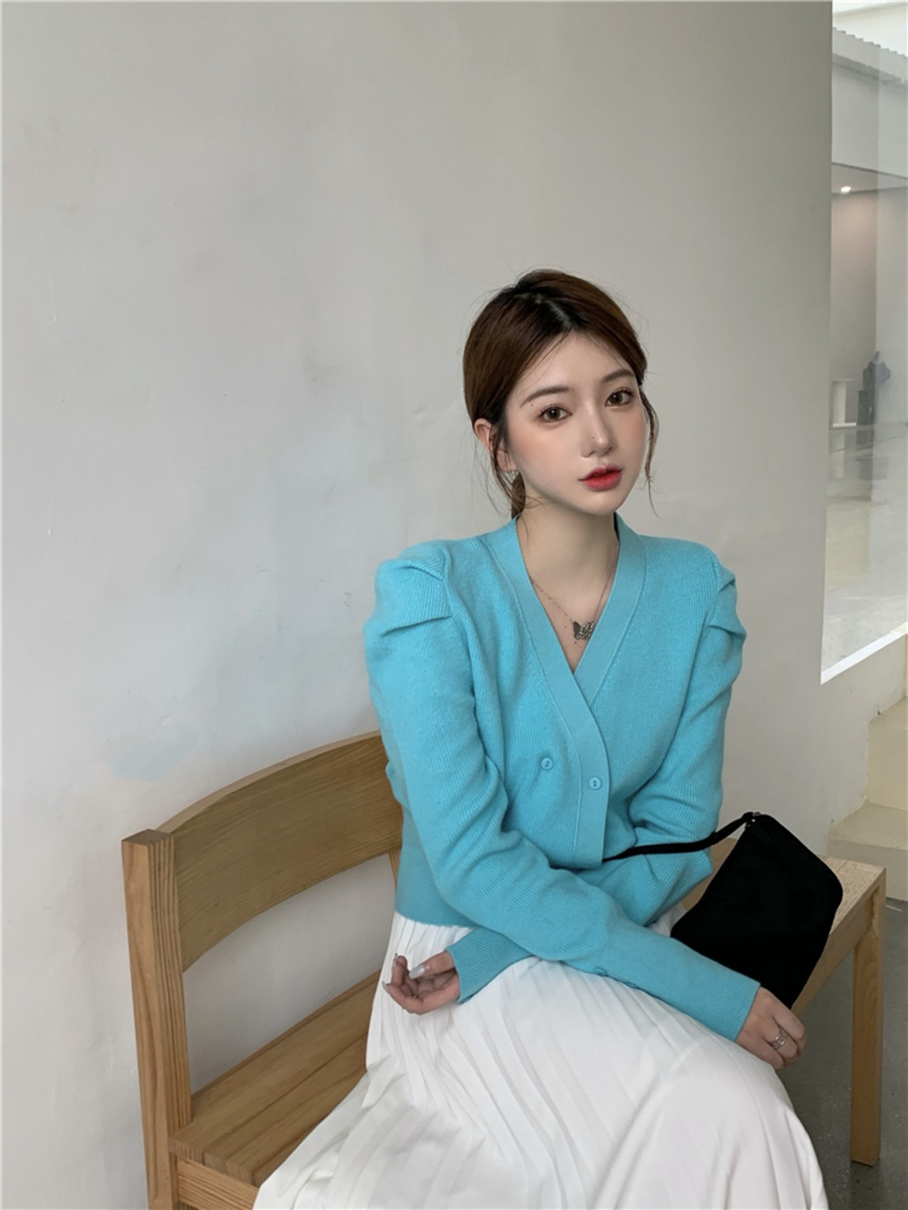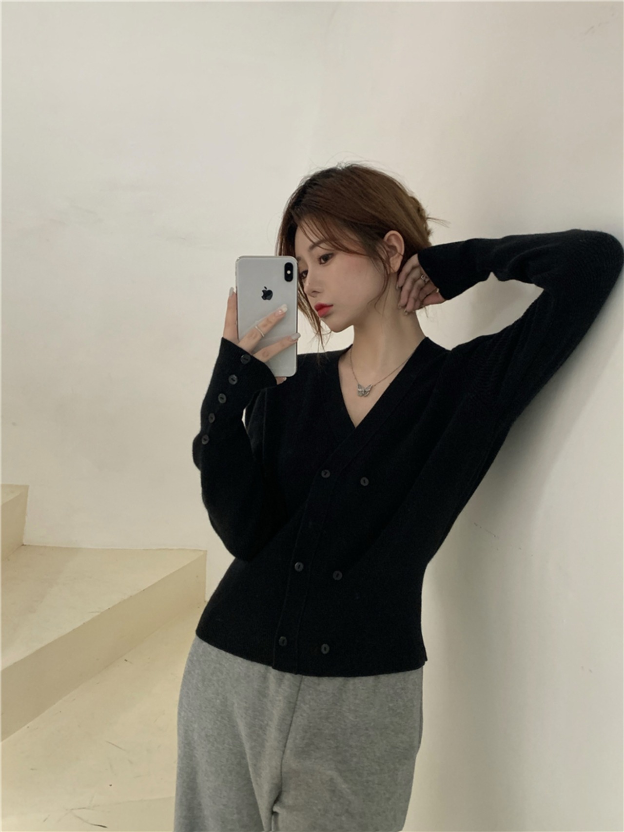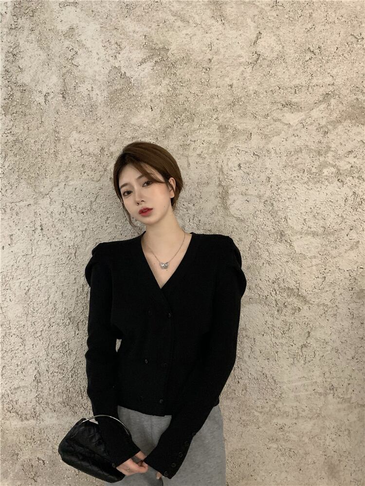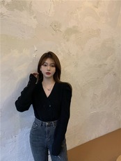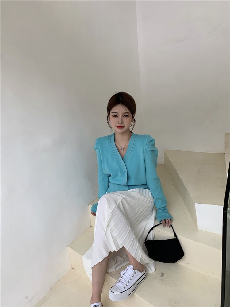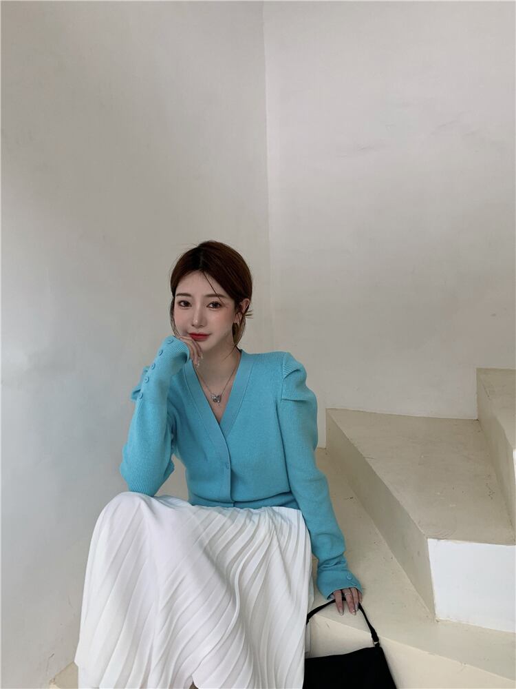 Vネックで首周りをスッキリと見せ、小顔効果に期待できます。