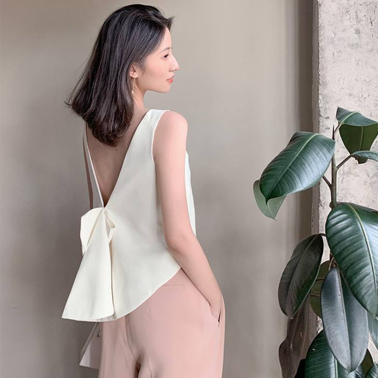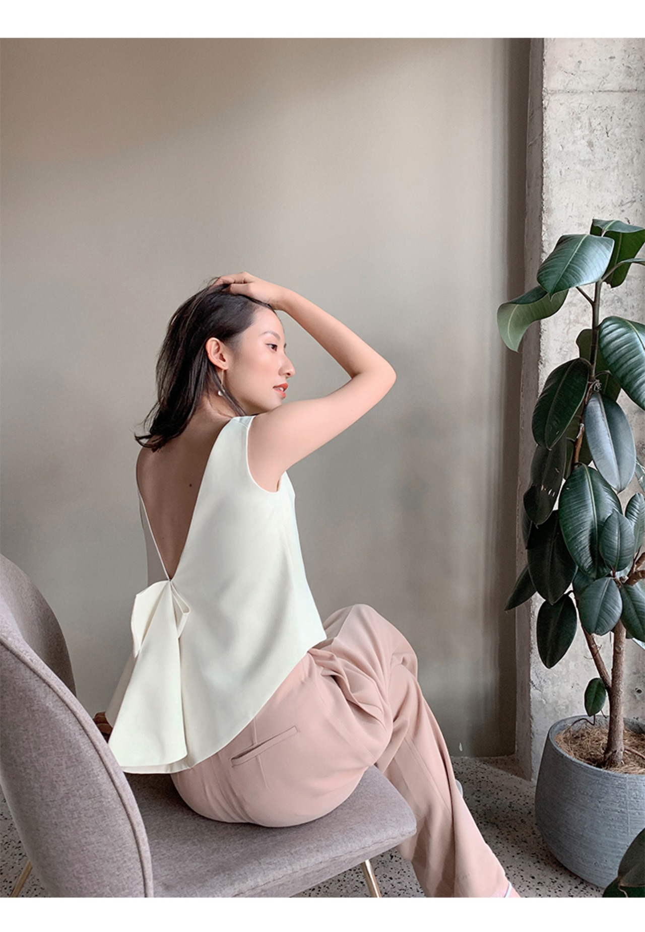 トップス プルオーバー 白トップス ショート ショート丈 袖あり ノースリーブ ボートネック スリム 細身 バックリボン バックシャン バックコンシャス バックオープン Vバック かわいい 大人可愛い きれいめ シンプル 大人 上品 おしゃれ お洒落 かっこいい エキゾチック 大人女子 こなれ感 キュート クール セクシー エレガント モダン 主役級 存在感 抜け感 フェミニン 無地 春 夏 レディース 女性用 デート お出かけ 女子会 休日 パーティー 着回し 普段使い モテ 白 ホワイト