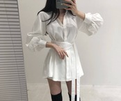 トップス ボトムス パンツ シャツ ブラウス ショートパンツ シャツワンピース 袖あり 長袖 ボリューム袖 パフスリーブ Vネック スタンダードカラー スリム 細身 ウエストマーク ウエストリボン 上下セット 2点セット ツーピース かわいい 大人可愛い きれいめ シンプル カジュアル 大人 上品 おしゃれ お洒落 大人女子 こなれ感 キュート ガーリー エレガント 抜け感 フェミニン 無地 春 夏 デート お出かけ 女子会 休日 着回し 普段使い モテ 体系カバー ホワイト ブラック ブルー カーキ