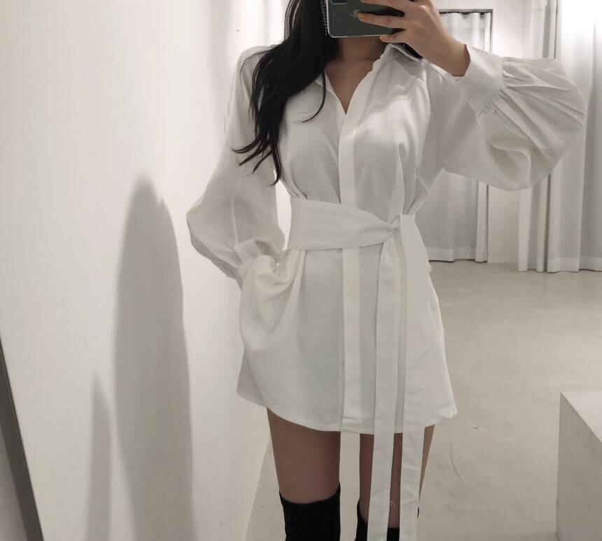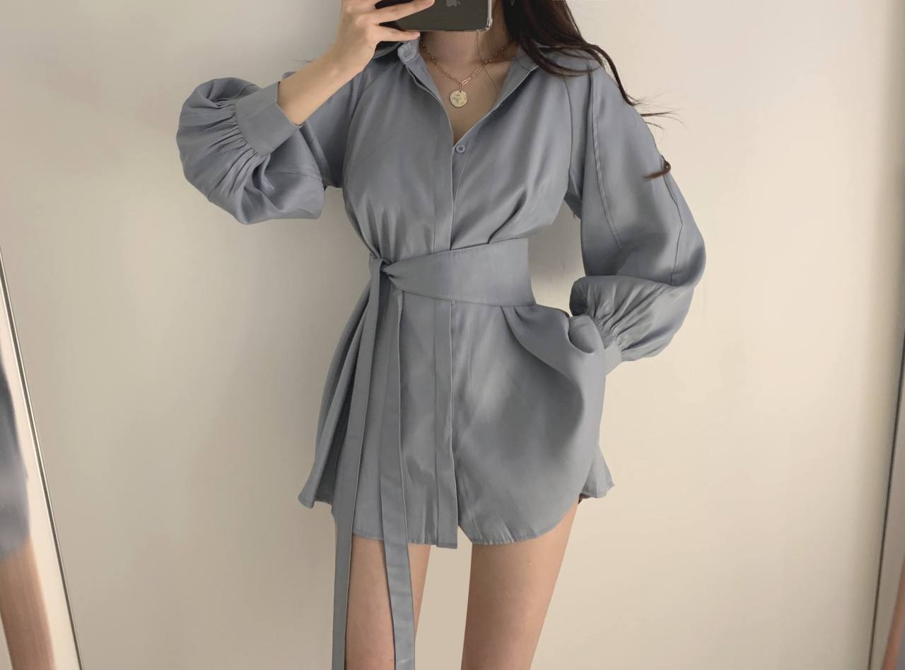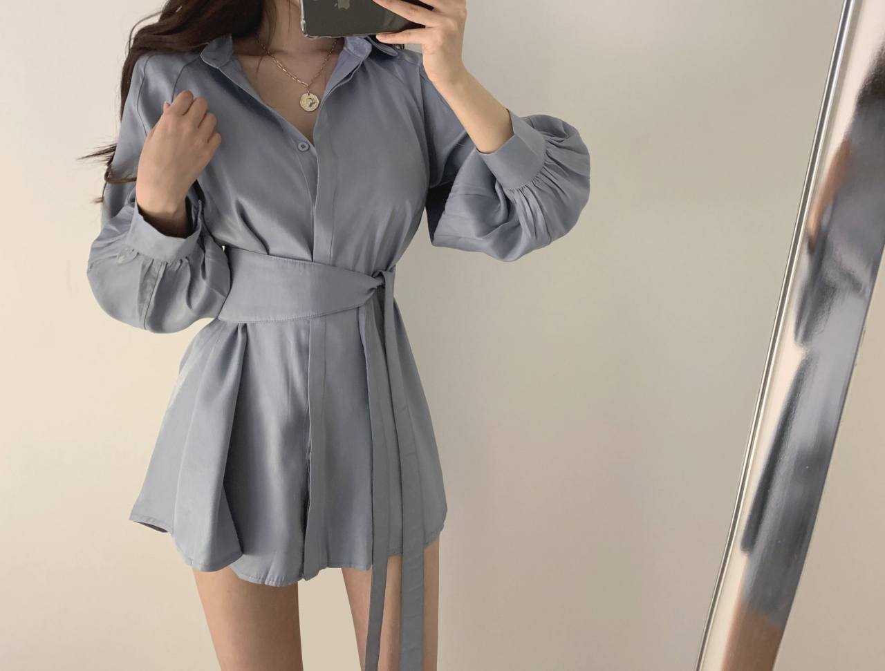 セットで着るとミニ丈のシャツワンピに、シャツ単体ではサラッと羽織ることも出来る便利な一着です。