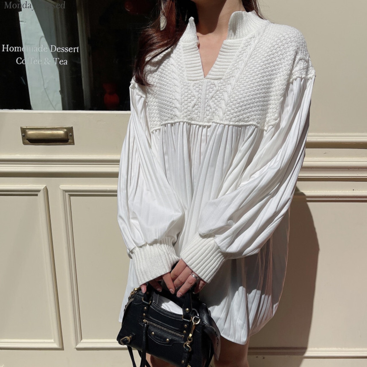 トップス ワンピース チュニック ミニ丈 ショート ショート丈 袖あり 長袖 ボリューム袖 Vネック セミフレア ワイド Aライン 切り替えデザイン ドッキング 大人可愛い 大人 おしゃれ お洒落 大人女子 こなれ感 ラフ ラブリー キュート ガーリー ルーズ 個性的 主役級 存在感 春 秋 冬 2022 2023 10代 20代 30代 40代 50代 60代 レディース 女性用 デート お出かけ 女子会 休日 ホテル レストラン 普段使い フリーサイズ 白 ホワイト 茶色 ブラウン