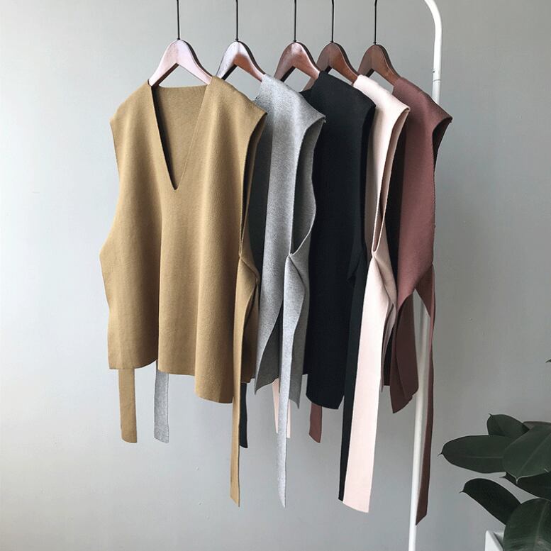 トップス ベスト ノースリーブ Vネック ワイド ニット きれいめ シンプル カジュアル 大人 上品 おしゃれ お洒落 かっこいい 大人女子 こなれ感 ラフ とろみ感 抜け感 無地 春 夏 秋 冬 オールシーズン シーズンレス 2022 2023 10代 20代 30代 40代 50代 60代 レディース 女性用 OL 通勤 学生 お出かけ 女子会 休日 普段使い 重ね着 ファッション コーデ フリーサイズ 黒 ブラック 茶色 ブラウン 灰色 グレー カーキ 大人カラー