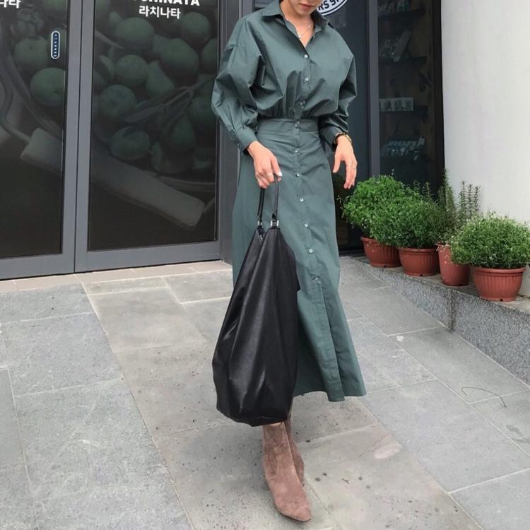 ワンピース シャツワンピース フレアワンピース ミモレ ミモレ丈 袖あり 長袖 Vネック 襟付き フレア セミフレア 前開き きれいめ シンプル カジュアル 大人 上品 おしゃれ お洒落 かっこいい 大人女子 こなれ感 ラフ エレガント モダン 無地 春 秋 冬 2022 2023 10代 20代 30代 40代 50代 60代 レディース 女性用 OL 通勤 学生 通学 デート お出かけ 女子会 休日 S M 緑 グリーン ベージュ