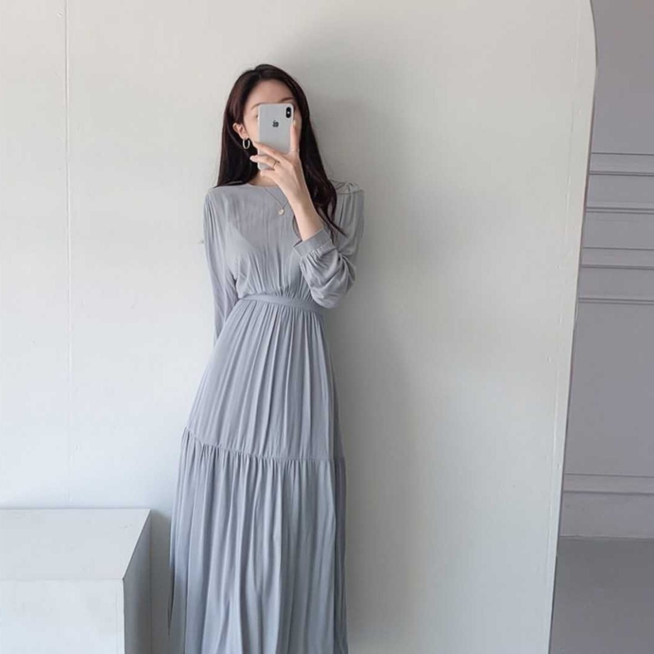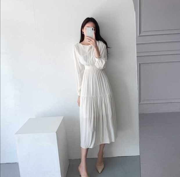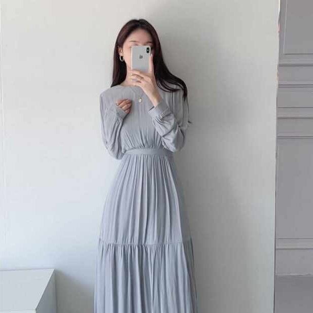 ワンピース フレアワンピース ティアードワンピース 膝下 ミモレ ミモレ丈 袖あり 長袖 ラウンドネック フレア セミフレア 大人可愛い きれいめ シンプル 大人 上品 おしゃれ お洒落 大人女子 こなれ感 ラフ ラブリー キュート ガーリー エレガント 無地 春 秋 冬 2022 2023 10代 20代 30代 40代 レディース 女性用 マタニティ OL 通勤 学生 通学 デート お出かけ 女子会 お泊まり 休日 リゾート 旅行 モテ フリーサイズ 白 ホワイト ピンク 水色