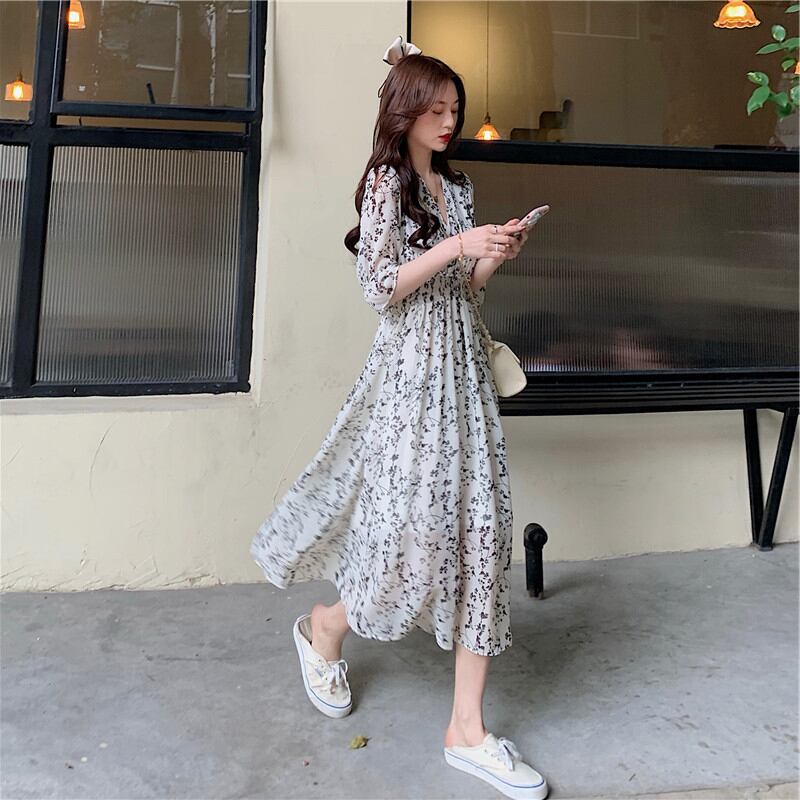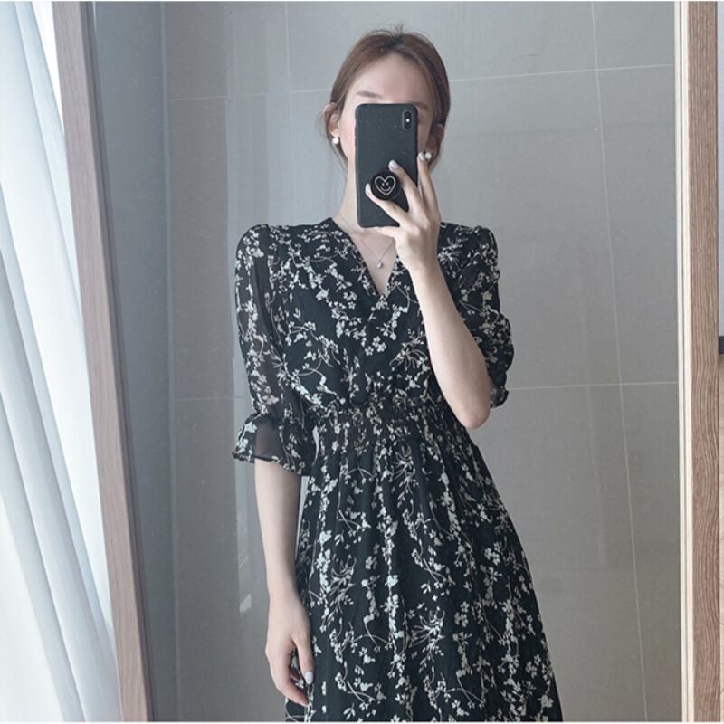 ワンピース フレアワンピース ミモレ 袖あり 5分袖 五分袖 Vネック フレア セミフレア シフォン ウエストマーク 大人可愛い きれいめ 大人 上品 おしゃれ お洒落 レトロ 大人女子 こなれ感 ラフ ラブリー キュート ガーリー エレガント 主役級 存在感 花柄 小花柄 春 秋 冬 2022 2023 10代 20代 30代 40代 レディース 女性用 デート お出かけ 女子会 パーティー イベント ホテル ガーデン レストラン モテ M L XL 2XL 3XL 4XL 白 ホワイト 黒 ブラック