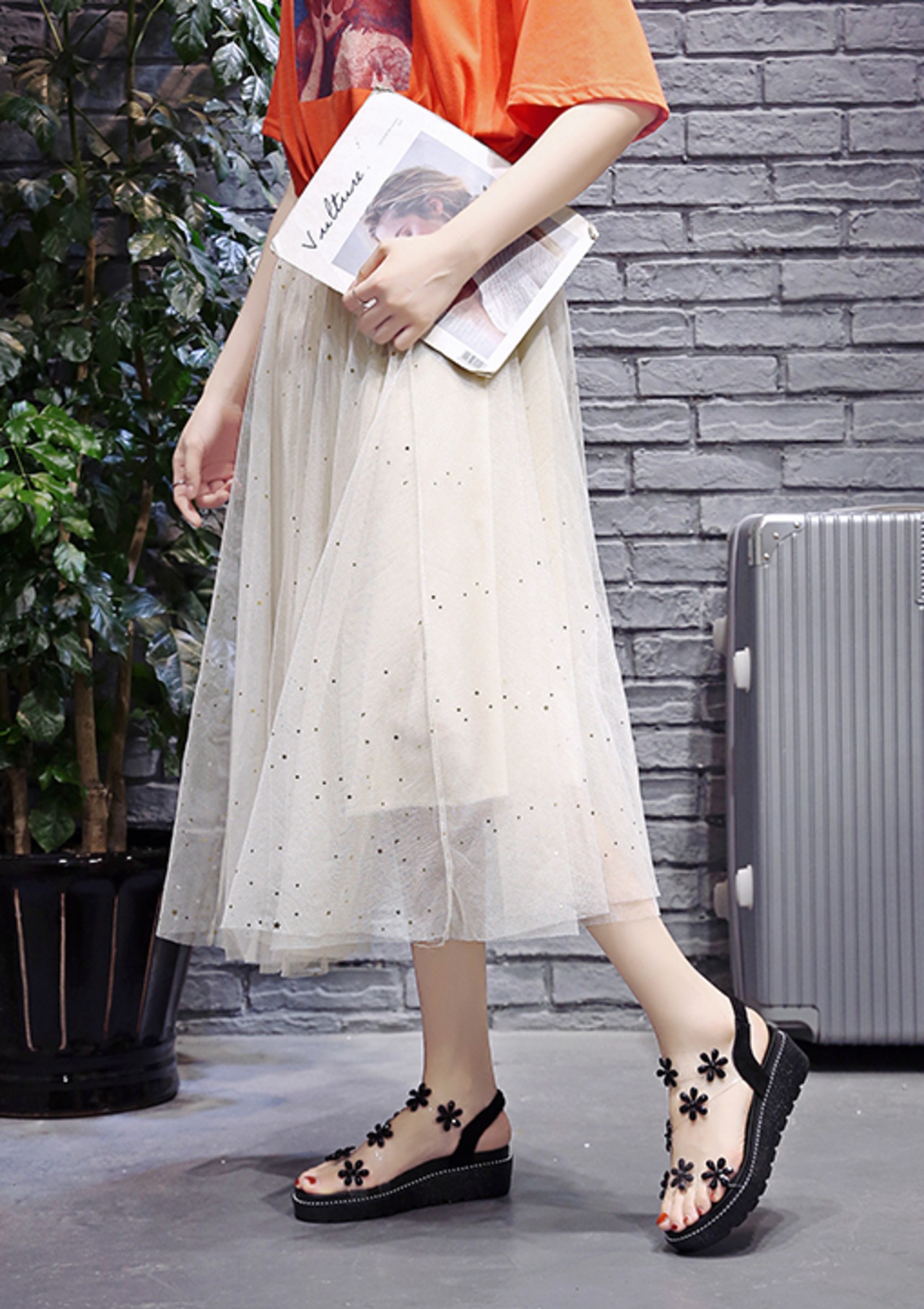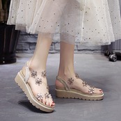キラキラのビジューが可愛らしさ満点のサンダルです。