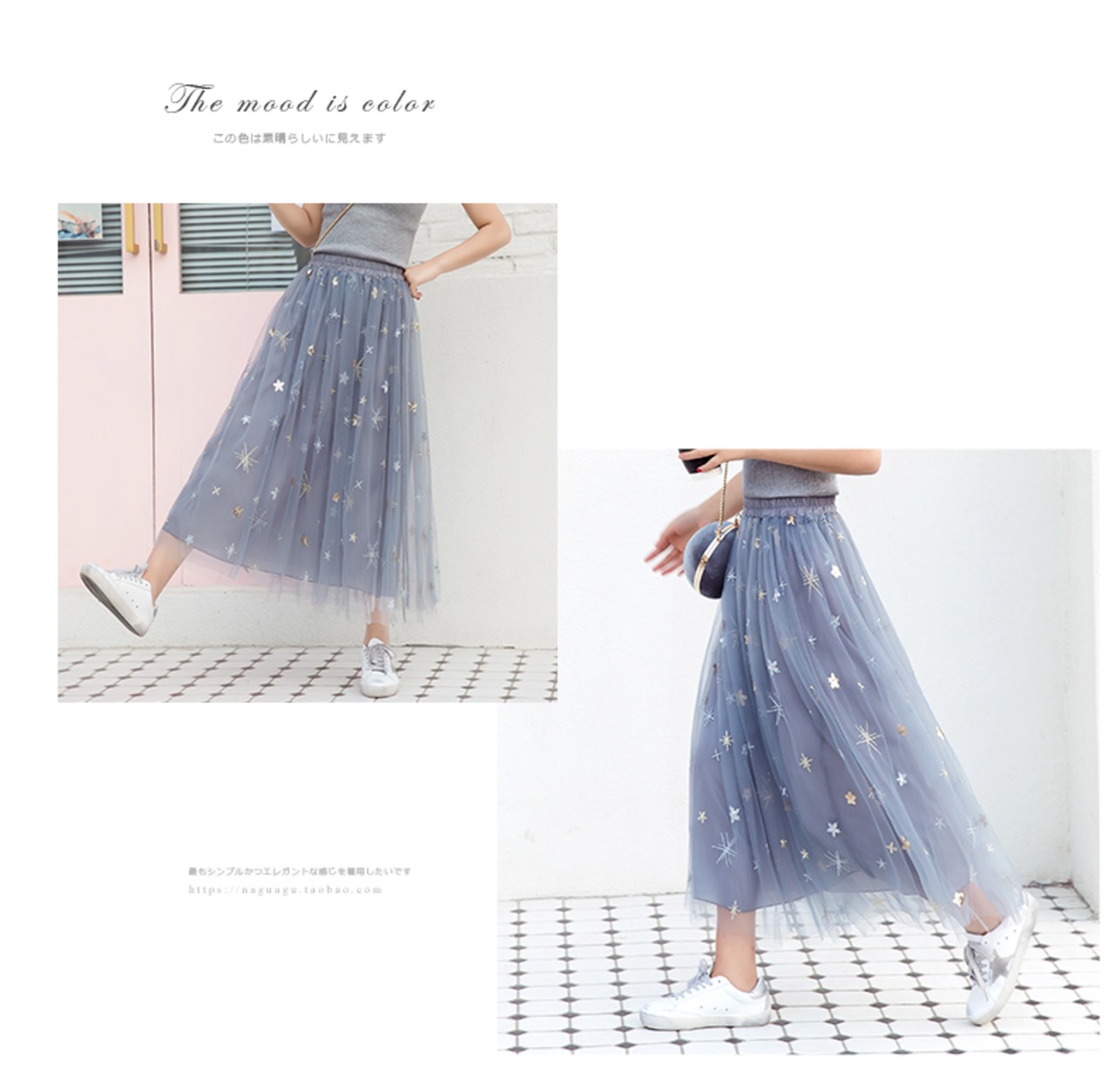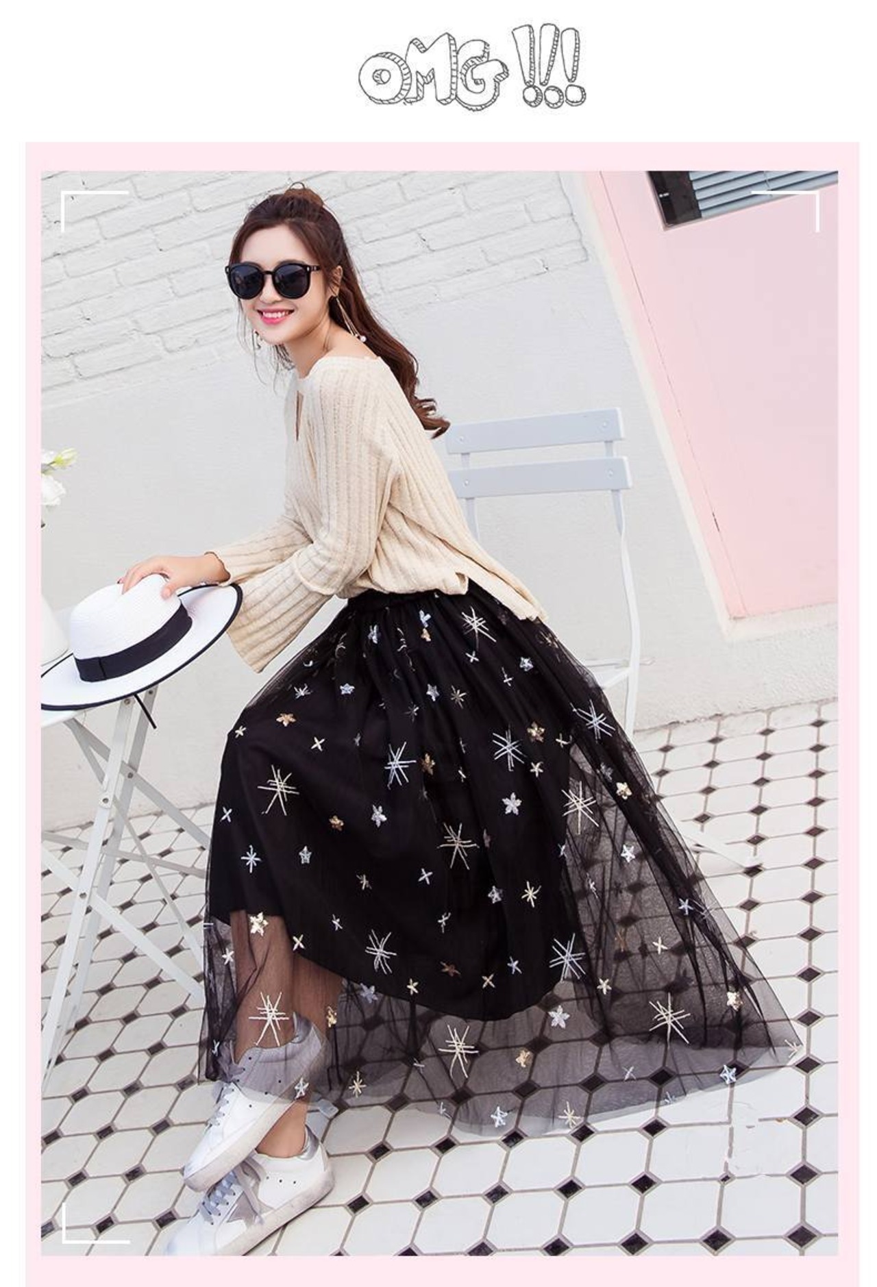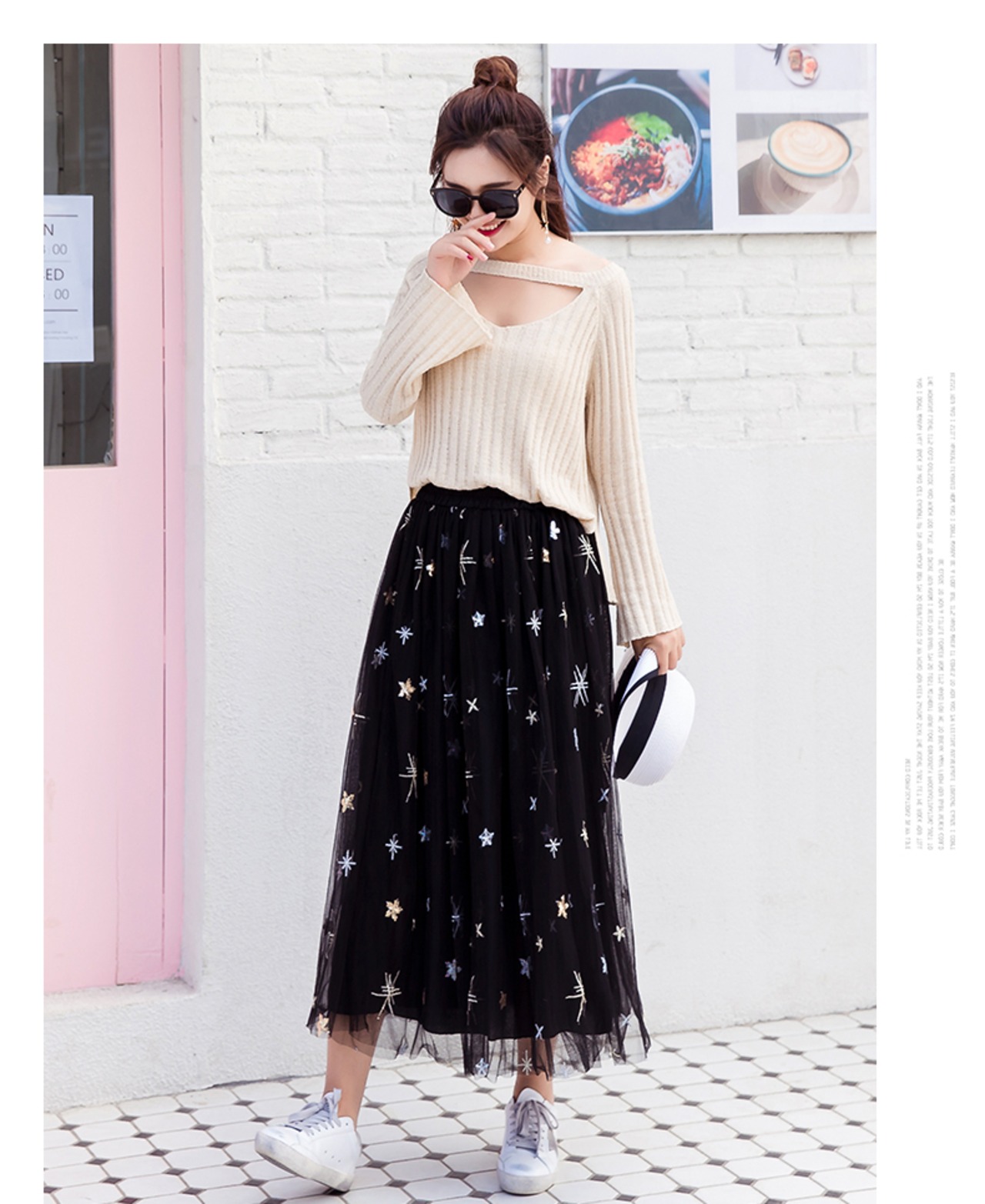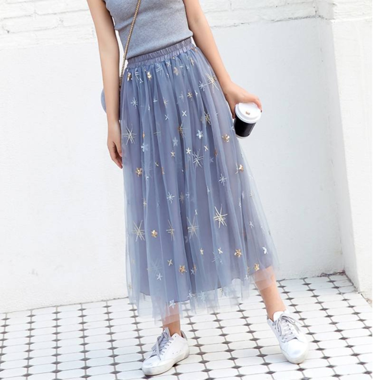 スカート ボトムス ロングスカート フレアスカート チュールスカート 膝下 ミモレ ミモレ丈 ロング ロング丈 フレア ワイド Aライン 刺繍 チュール ふわふわ ハイウエスト ウエストゴム 透け感 シースルー 伸縮性 スパンコール かわいい 大人可愛い きれいめ シンプル 大人 上品 おしゃれ お洒落 大人女子 キュート ガーリー エレガント モダン 主役級 存在感 抜け感 フェミニン 無地 柄 総柄 星 スター 春 夏 秋 冬 オールシーズン シーズンレス デート お出かけ 着回し モテ 体系カバー