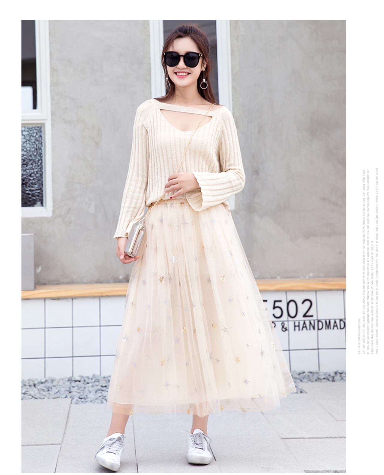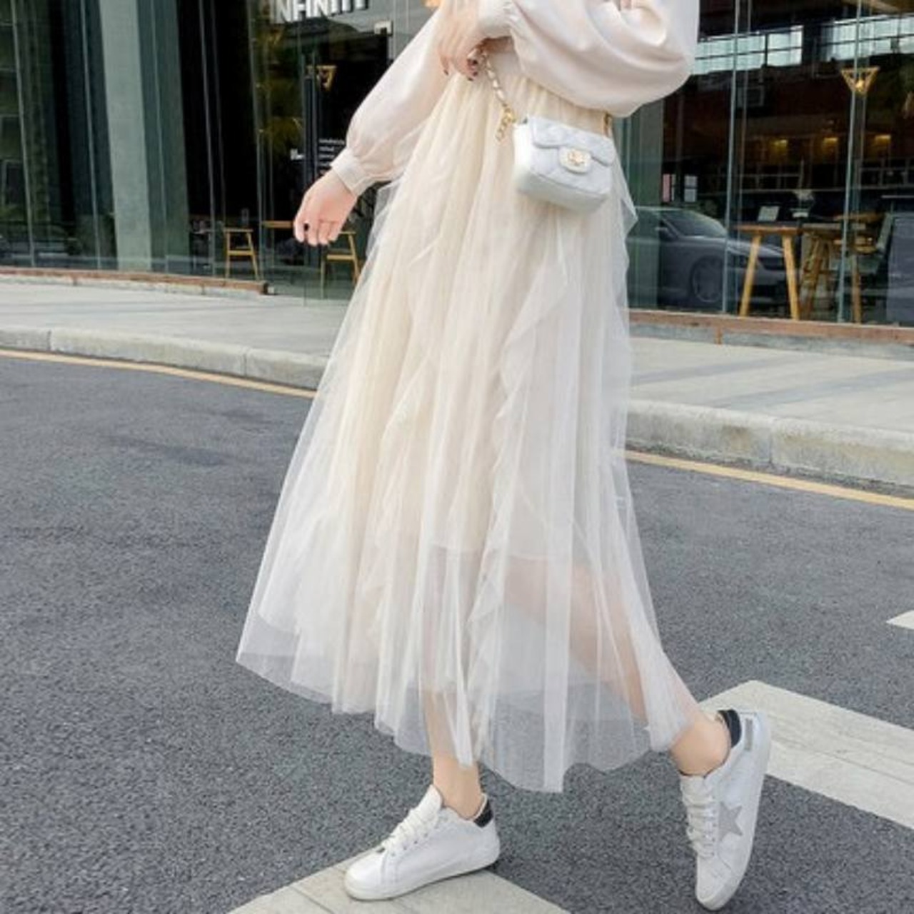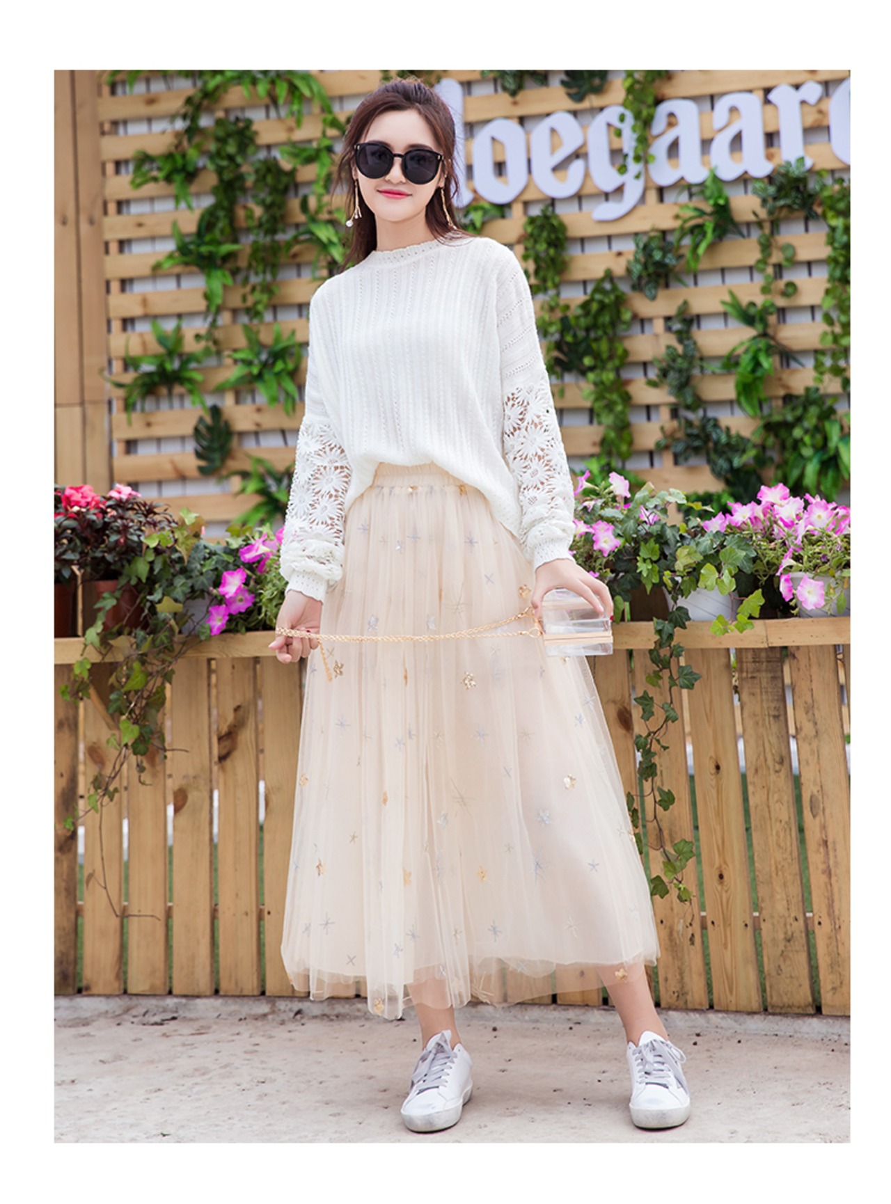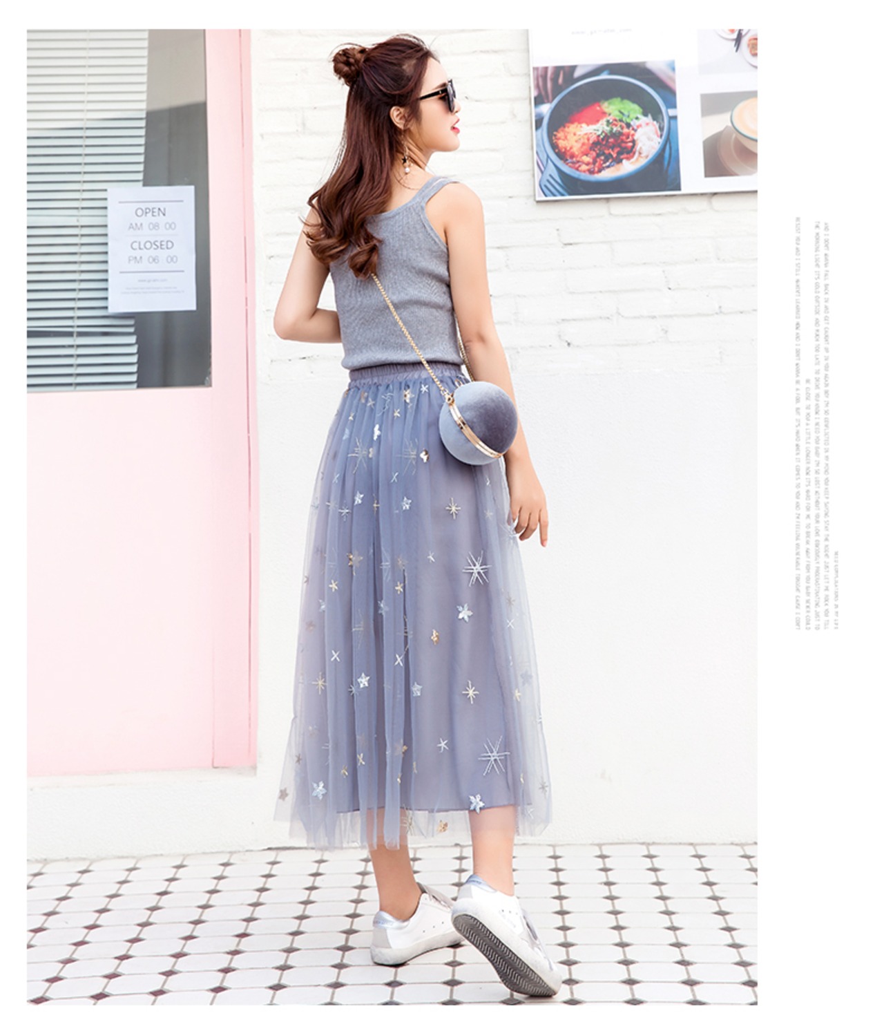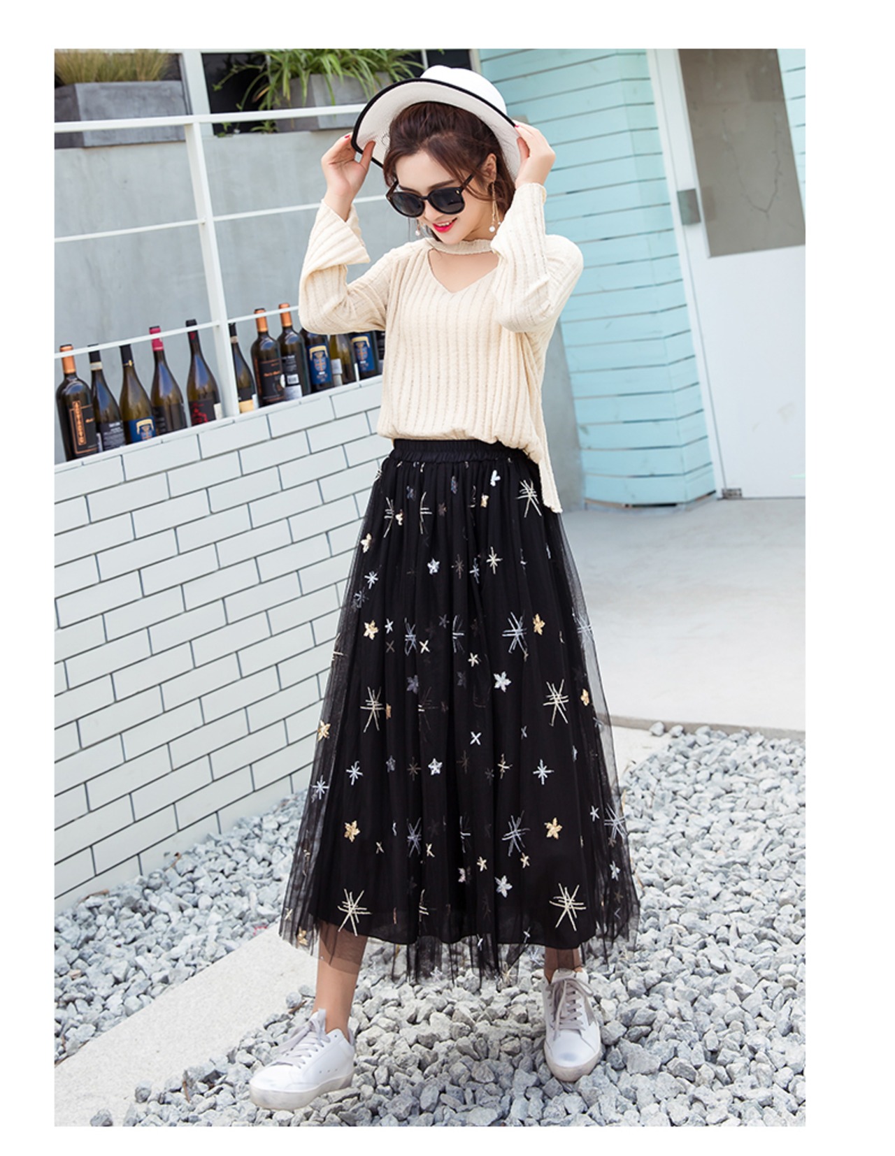 スカート ボトムス ロングスカート フレアスカート チュールスカート 膝下 ミモレ ミモレ丈 ロング ロング丈 フレア ワイド Aライン 刺繍 チュール ふわふわ ハイウエスト ウエストゴム 透け感 シースルー 伸縮性 スパンコール かわいい 大人可愛い きれいめ シンプル 大人 上品 おしゃれ お洒落 大人女子 キュート ガーリー エレガント モダン 主役級 存在感 抜け感 フェミニン 無地 柄 総柄 星 スター 春 夏 秋 冬 オールシーズン シーズンレス デート お出かけ 着回し モテ 体系カバー