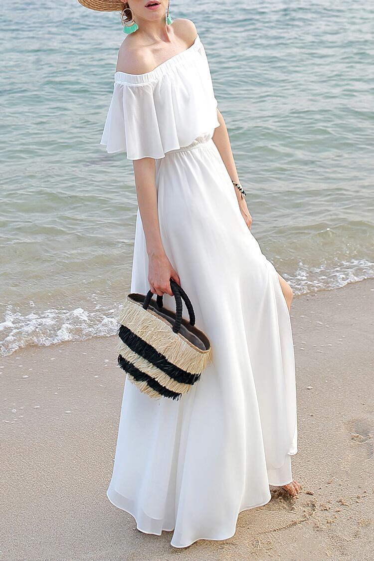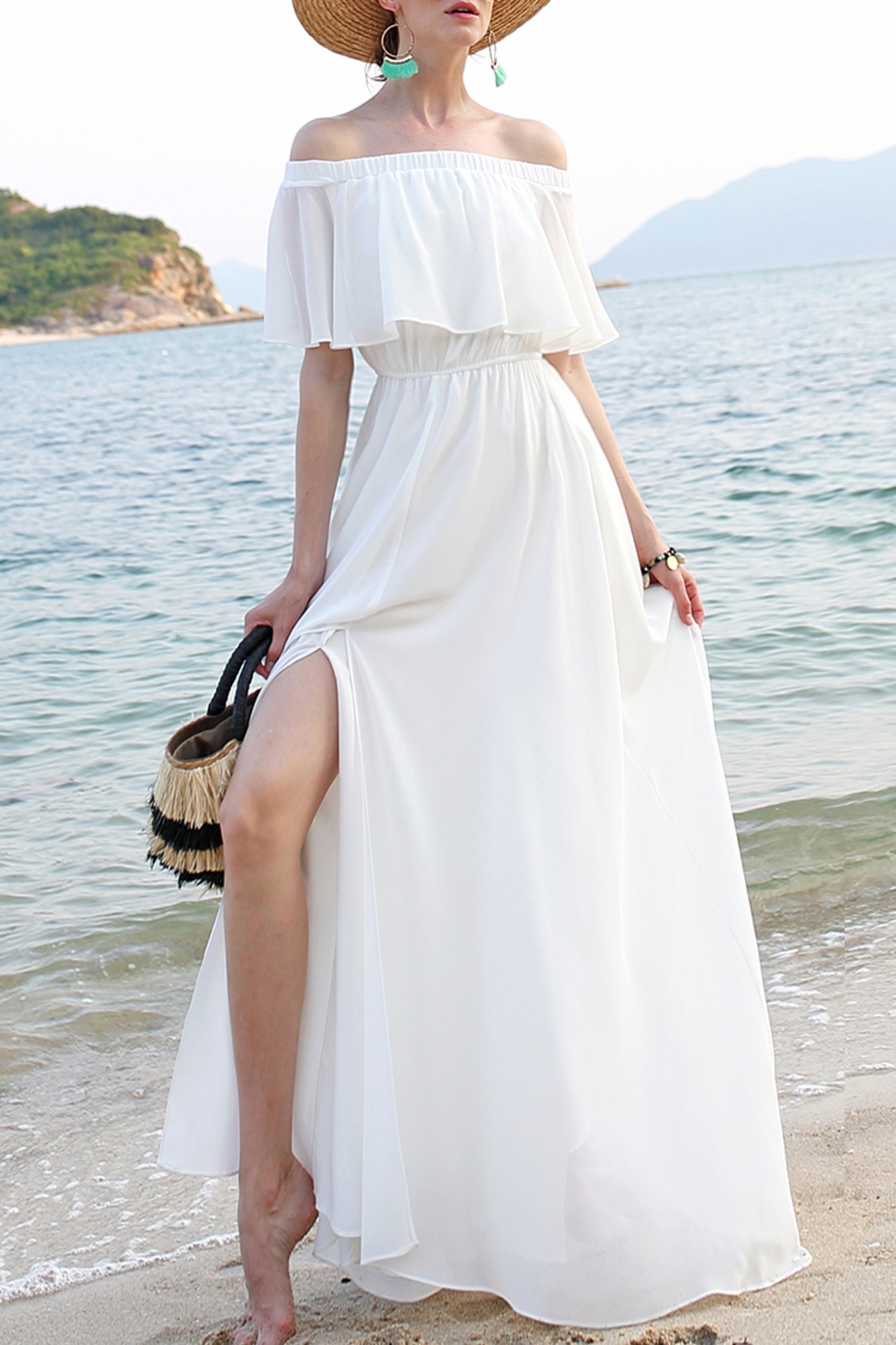 ワンピース フレアワンピース ロング ロング丈 マキシ マキシ丈 9分丈 袖あり 半袖 オフショルダー オフショル フレア スリム 細身 ワイド Aライン シフォン フリル ウエストマーク スリット サイドスリット ハイウエスト ウエストゴム 透け感 かわいい 大人可愛い きれいめ シンプル 大人 上品 おしゃれ お洒落 こなれ感 ラブリー キュート ガーリー セクシー エレガント モダン とろみ感 抜け感 フェミニン 無地 春 夏 デート お出かけ リゾート 旅行 海 楽ちん モテ 体系カバー 脚長 白
