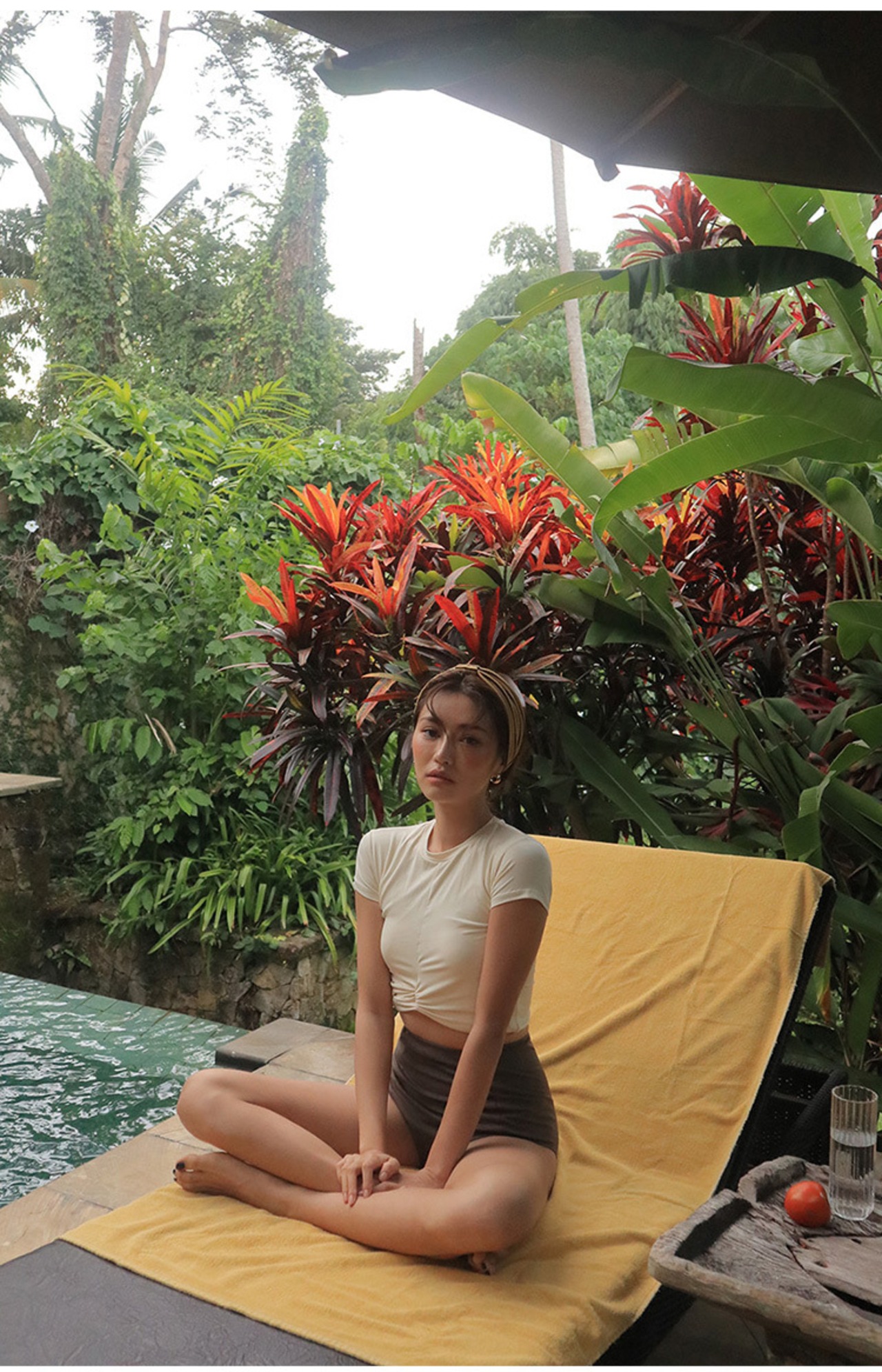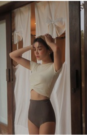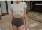 ウエストの捻じりがお洒落で、ハイウエストのショートパンツでスタイルアップに期待できます。