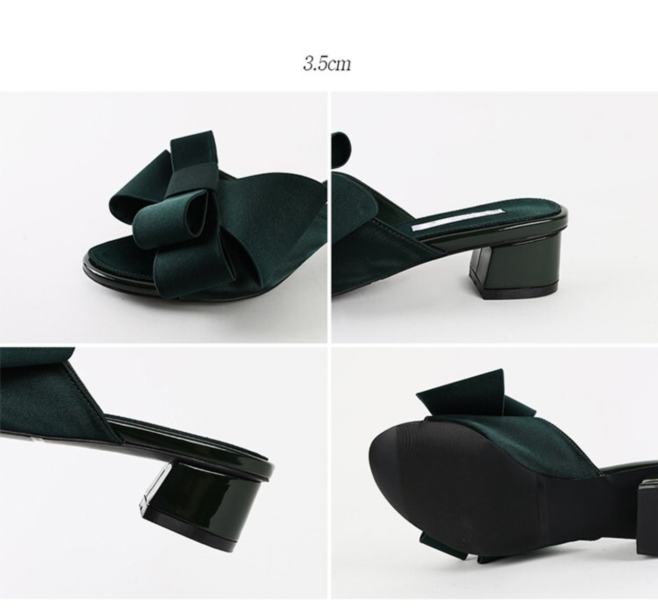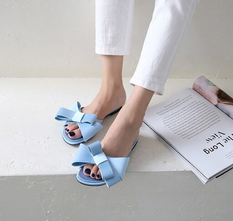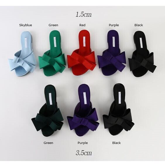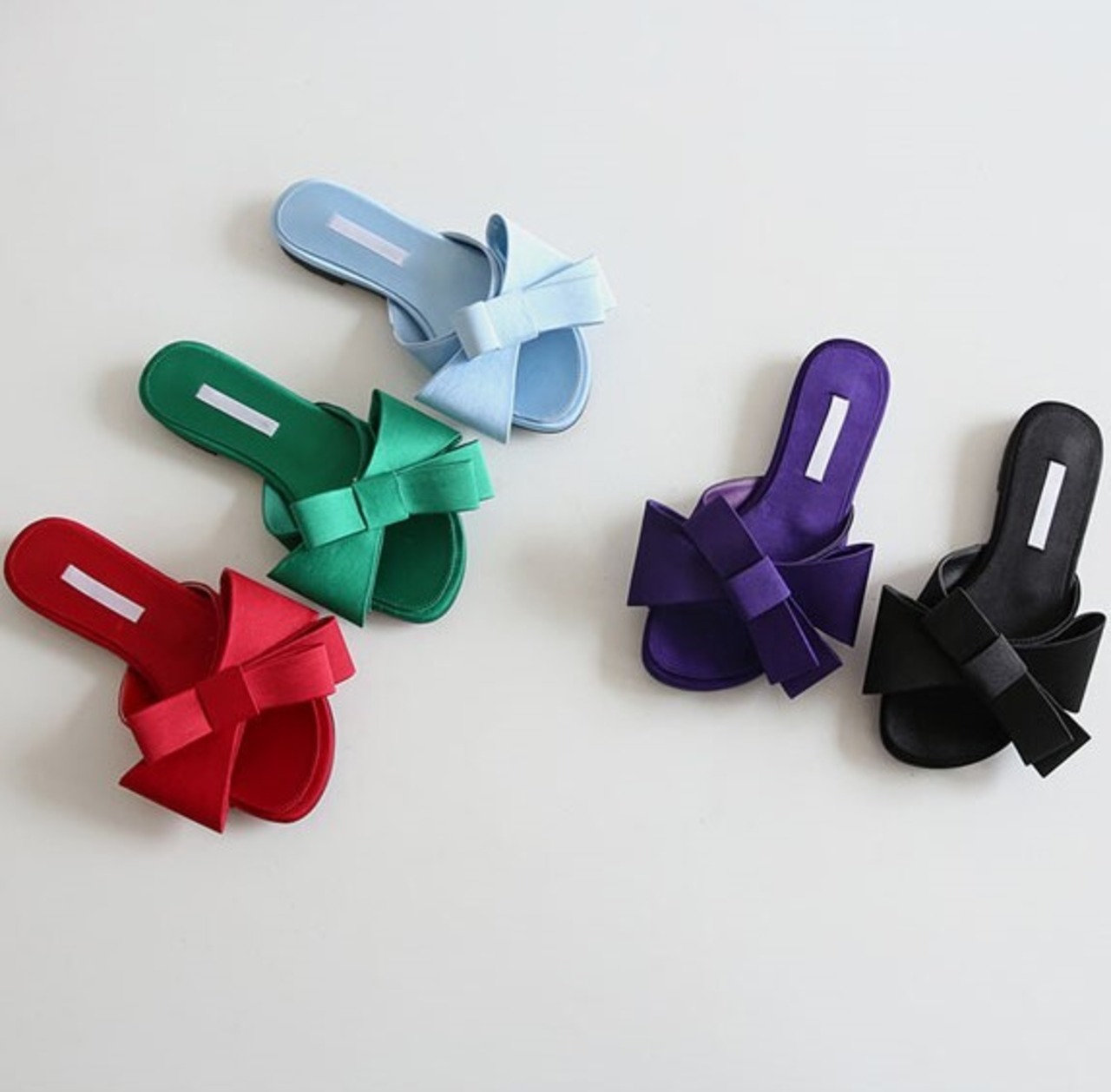 大きなリボンと太いヒールで存在感抜群なサンダルです。