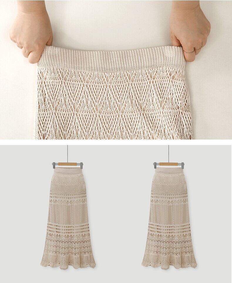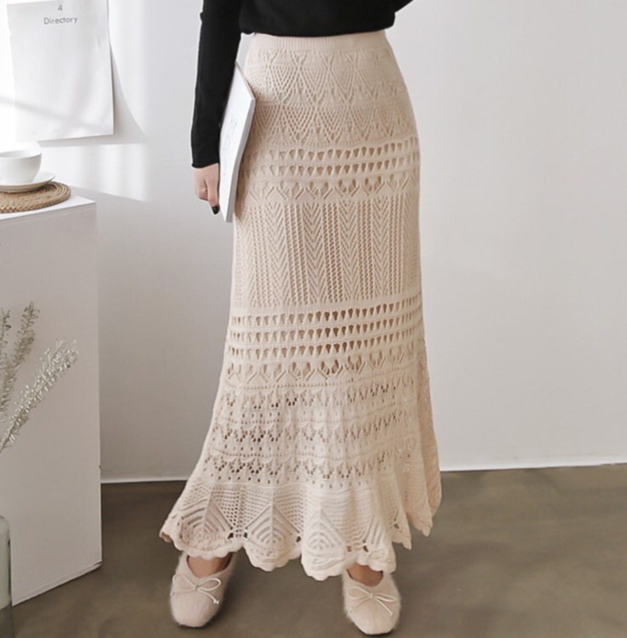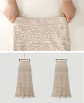 裾まで色々なデザインが施されたレースニットが大人可愛いスカートです。