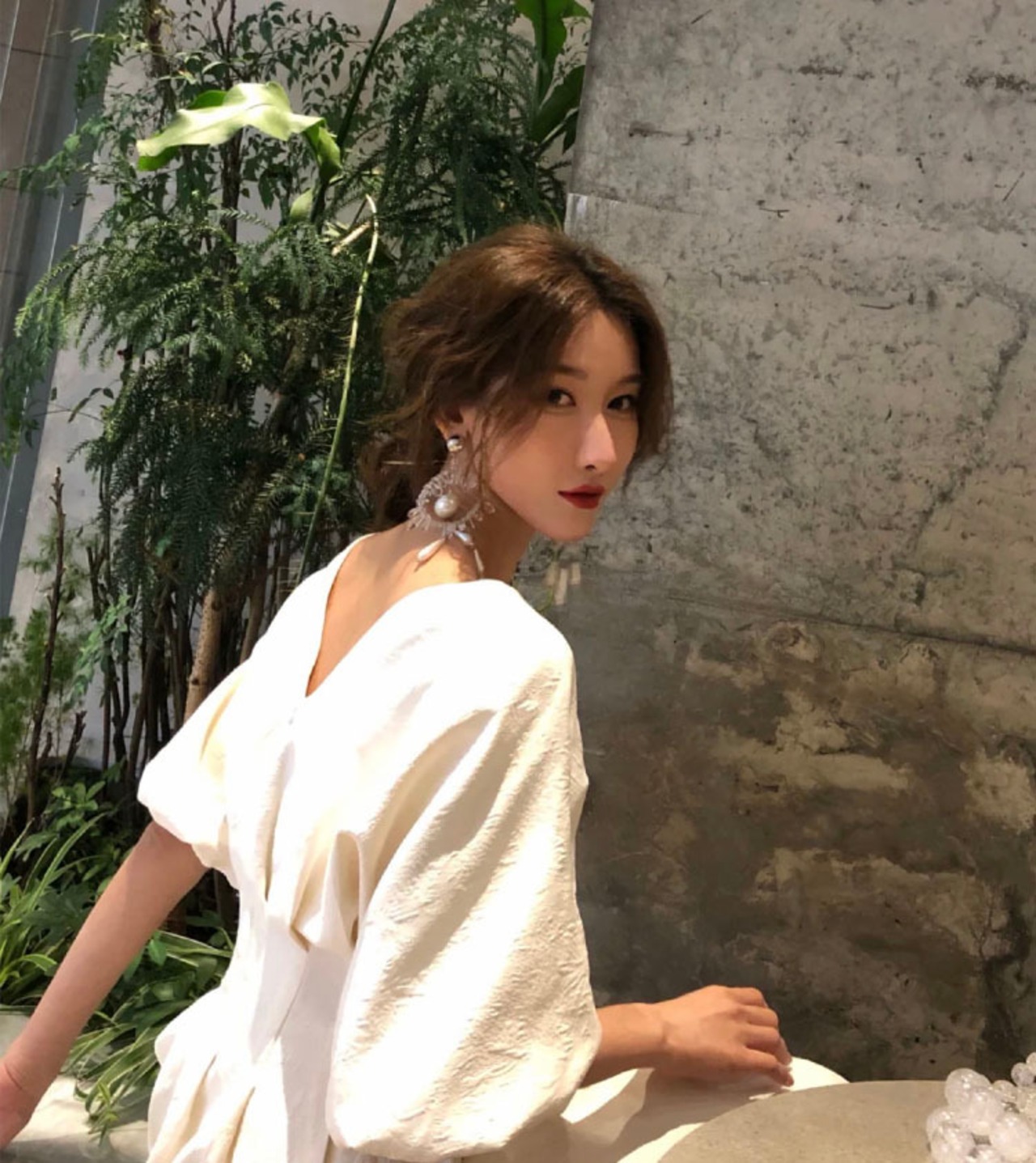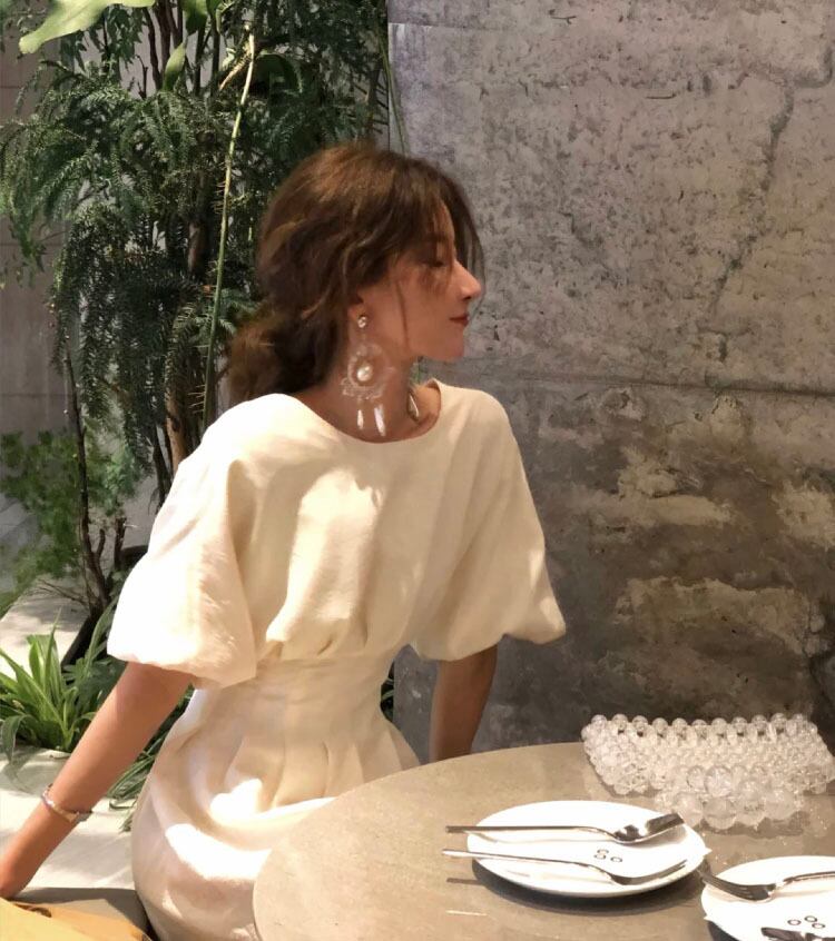 ボリューム袖とウエストマークがスタイルアップ効果も。