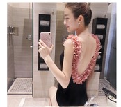 正面は肌の露出を抑えていて落ち着いた雰囲気ですが、背面はセクシーなUバックで華やかな印象です。