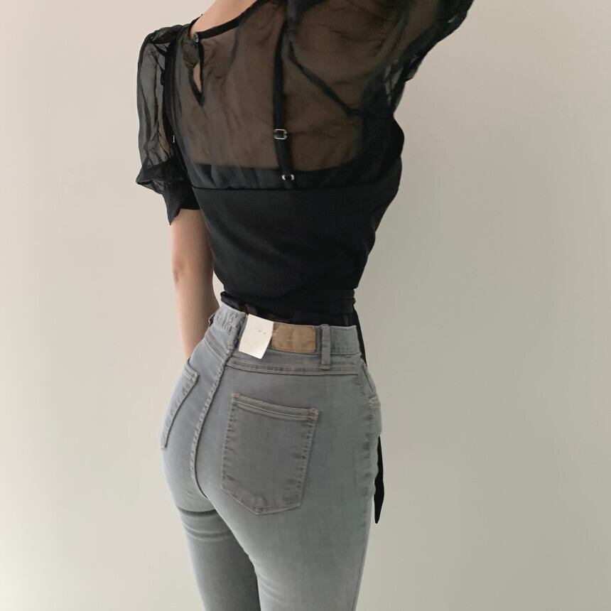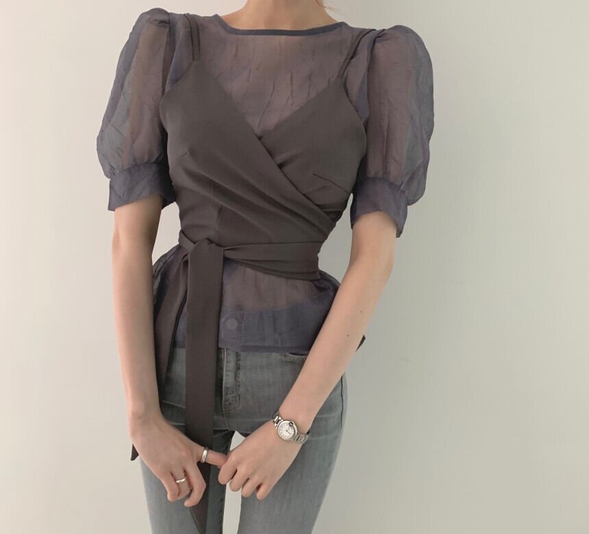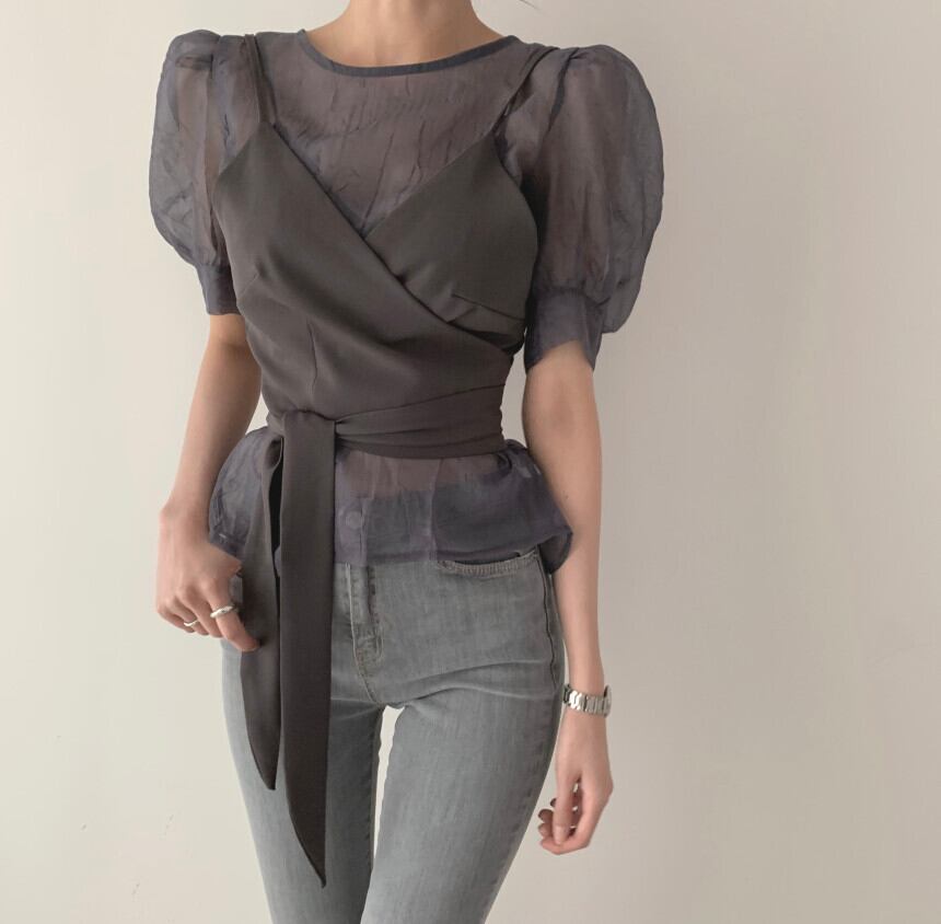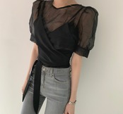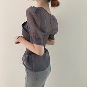 透け感がおしゃれな半袖トップスです。