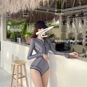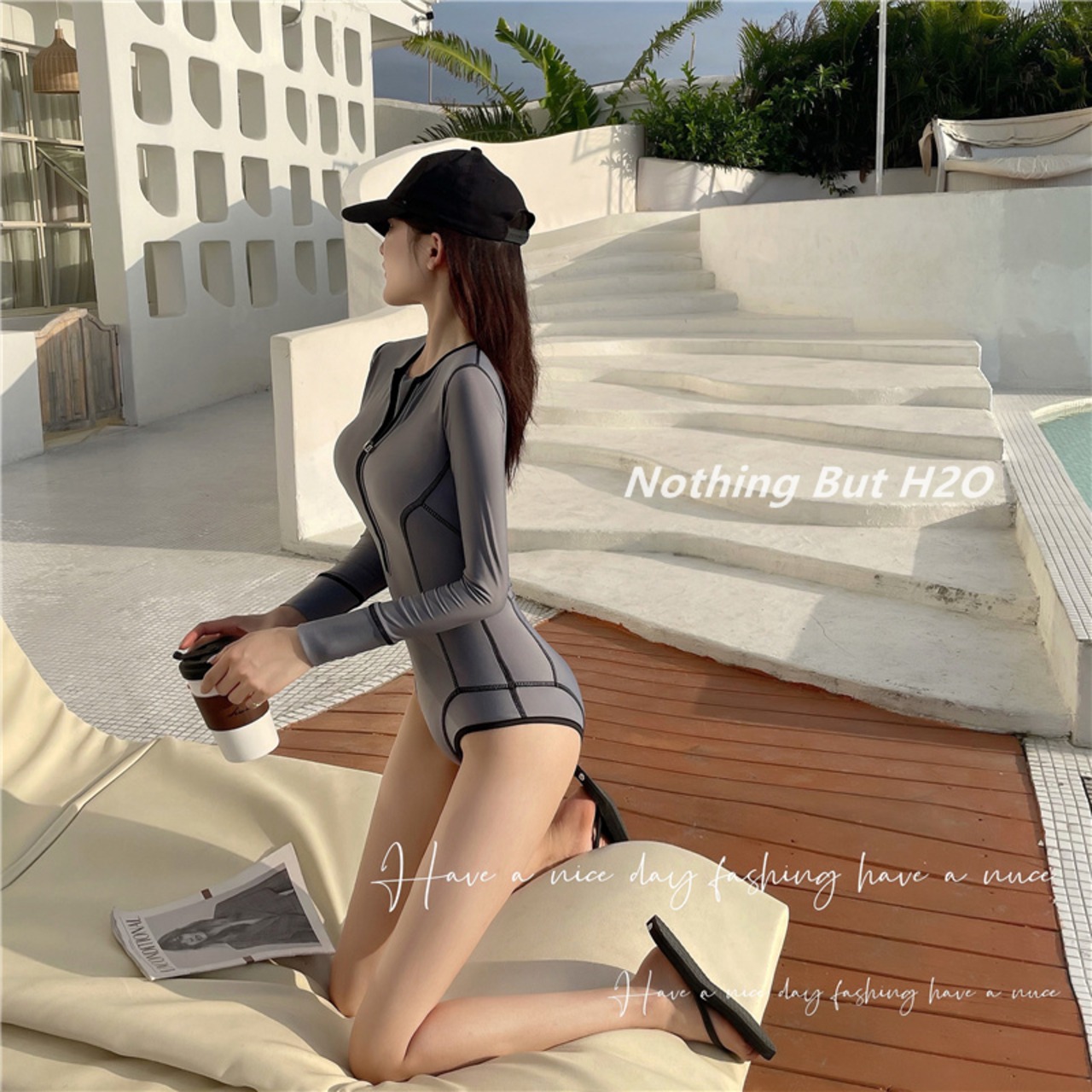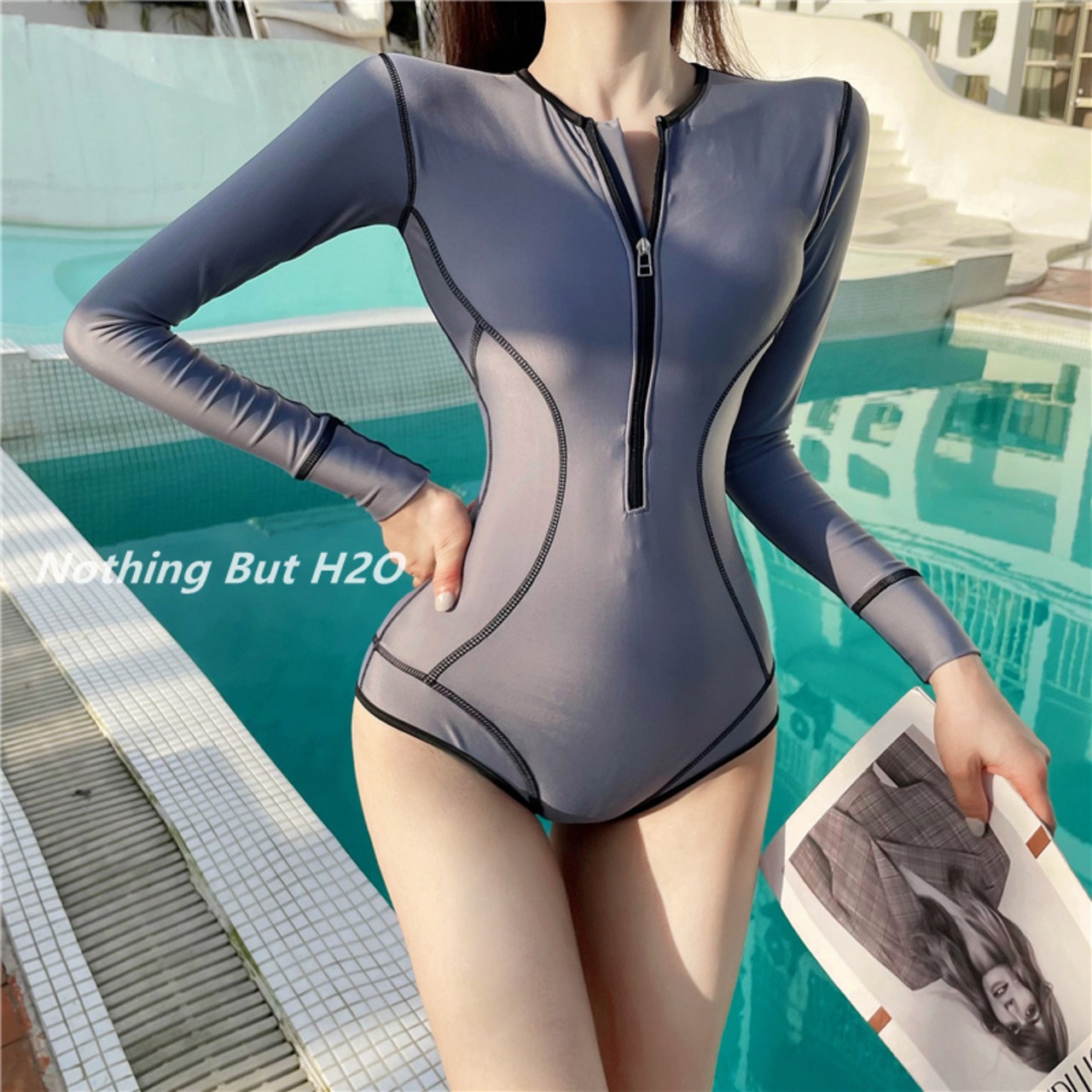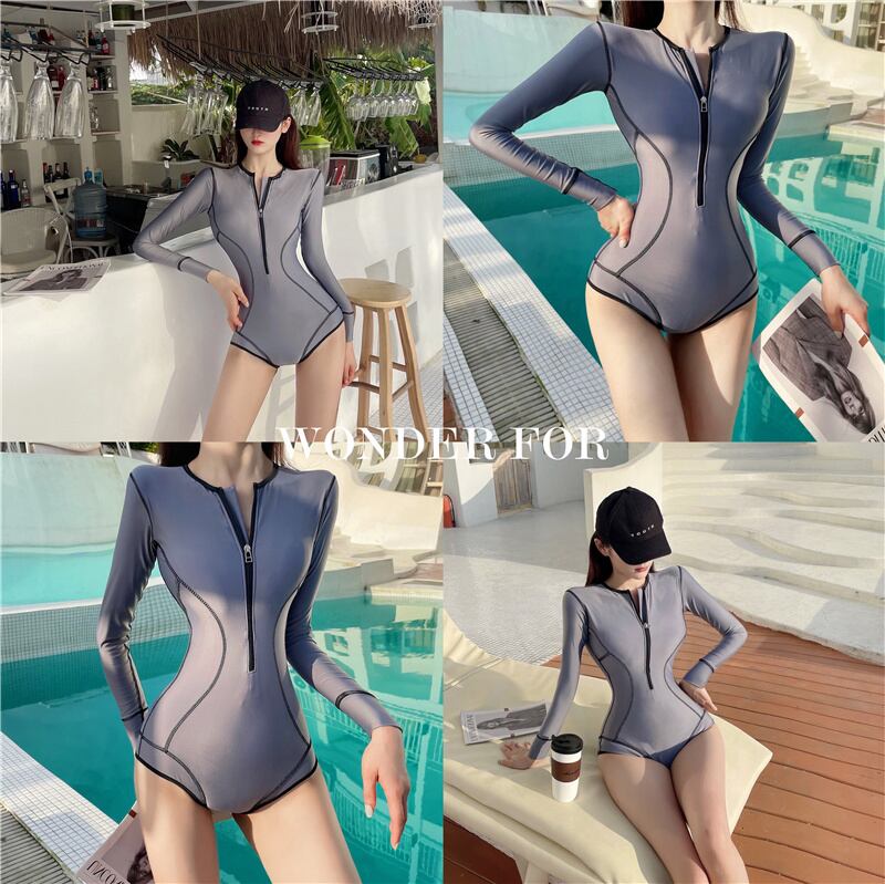 水着 ビキニ スイムウェア フィットネス水着 ワンピース ノンワイヤー パッド付き 体系カバー 二の腕カバー 長袖 クルーネック ステッチ 伸縮性 日焼け防止 紫外線対策 ジップアップ かわいい 大人可愛い きれいめ シンプル カジュアル 大人 大人っぽい おしゃれ お洒落 クール スタイリッシュ モダン かっこいい マニッシュ メンズライク 無地 ライン レディース 女性用 夏 海 ビーチ プール リゾート 旅行 スポーツ 美脚 着痩せ スタイルアップ プレゼント ギフト 定番 モテ 灰色 グレー