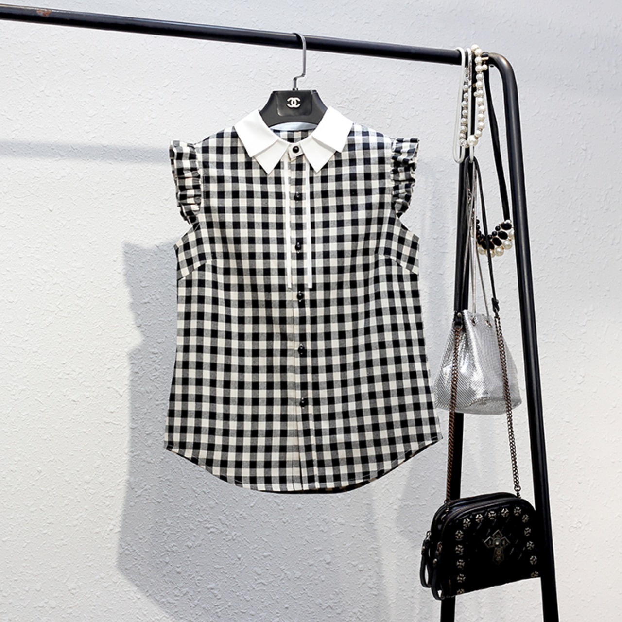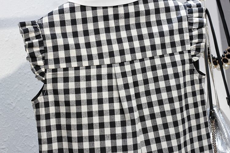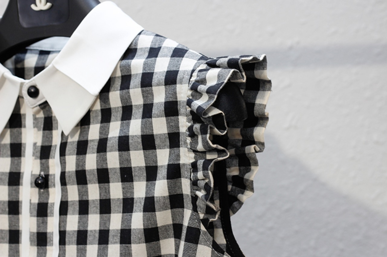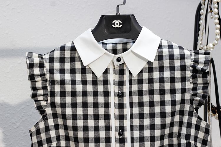 トップス ブラウス ノースリーブ 襟付き フリル 大人可愛い きれいめ 大人 上品 おしゃれ お洒落 大人女子 こなれ感 ラブリー キュート ガーリー エレガント 主役級 存在感 チェック柄 春 夏 10代 20代 30代 レディース 女性用 ママ キッズ 女の子 通学 デート お出かけ 女子会 休日 ホテル ガーデン レストラン モテ S M L XL 2XL 3XL 4XL 白 ホワイト 黒 ブラック