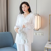 ルームウェア パジャマ ジャージ 部屋着 寝巻き ナイトウェア ロング ロング丈 袖あり 長袖 Vネック レース 前開き ウエストゴム 2点セット ツーピース 上下セット 上品 ラブリー キュート ガーリー セクシー エレガント とろみ感 抜け感 無地 柄 花柄 春 夏 秋 冬 オールシーズン シーズンレス 10代 20代 30代 40代 50代 60代 レディース 女性用 キッズ 女の子 お泊まり 休日 スタイル 楽ちん 暖かい モテ M L XL 2XL 白 ホワイト 黒 ブラック ピンク