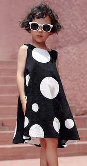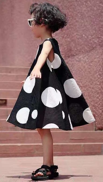 【子ども】白黒ドット柄 フレアーワンピース ノースリーブ おしゃれ かわいい 水玉模様 コインドット お出かけ用