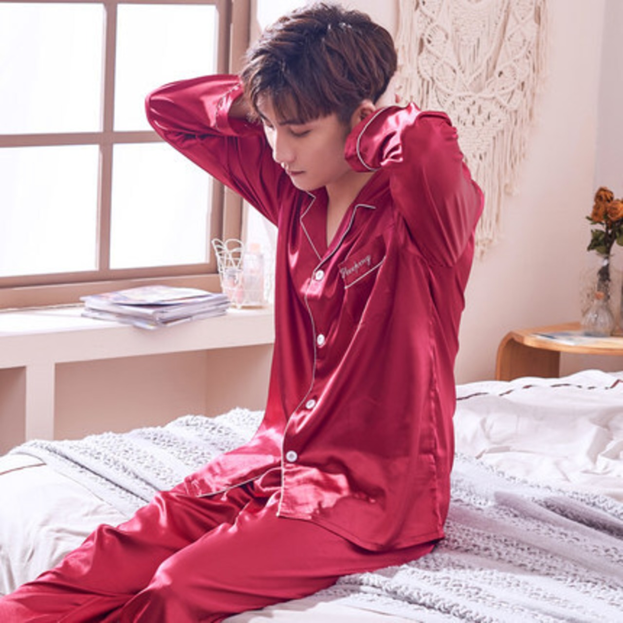 セットアップ ルームウェア パジャマ 部屋着 寝巻き ナイトウェア 袖あり 長袖 襟付き 2点セット 上下セット 大人可愛い きれいめ シンプル 大人 上品 おしゃれ お洒落 かっこいい 大人女子 こなれ感 ラフ メンズライク 無地 春 夏 秋 冬 オールシーズン シーズンレス 10代 20代 30代 40代 50代 レディース メンズ ペア 女性用 男性用 男女兼用 お泊まり 休日 M L XL 2XL 3XL 赤 レッド 青 ブルー 灰色 グレー ピンク