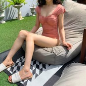 肌の露出を抑えたデザインで、気になるお腹をしっかりとカバーしてくれます。