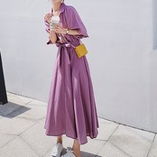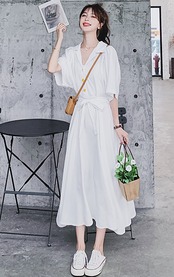 ワンピース シャツワンピース フレアワンピース Aライン ロング丈 五分袖 半袖 フレア リボン ウエストリボン ハイウエスト 透け感 無地 かわいい 大人可愛い きれいめ シンプル カジュアル 大人 上品 おしゃれ フェミニン 大人カジュアル 大人女子 こなれ感 主役級 存在感 とろみ感 抜け感 ゆったり ナチュラル ベーシック クラシカル 春 夏 レディース OL 学生 通学 デート お出かけ 女子会 休日 旅行 海 レストラン リモート会議 着回し 普段使い 華奢見え