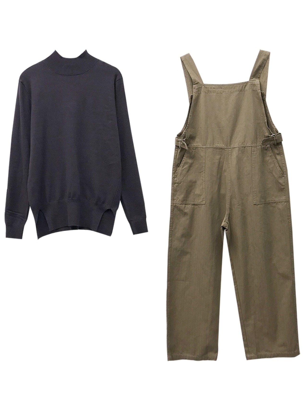 マタニティ セット ハイネック オーバーオール サロペット つなぎ オールインワン ワイド ポケット 無地 かわいい 大人可愛い シンプル カジュアル 大人 おしゃれ かっこいい 大人カジュアル 大人女子 こなれ感 ゆったり ベーシック 春 秋 10代 20代 30代 40代 レディース ママ マタニティ お出かけ 公園デビュー 旅行 着回し 普段使い 重ね着 デイリー コーデ 楽ちん リラックス 定番 日常使い 休日