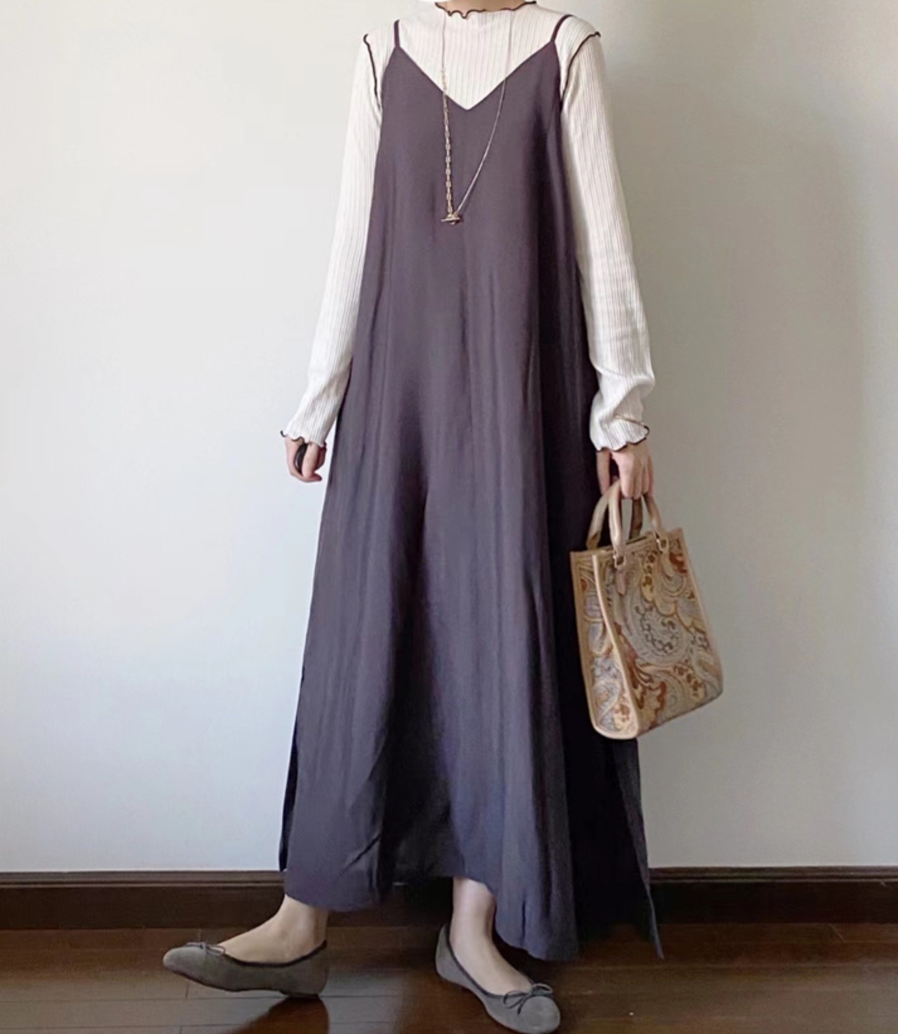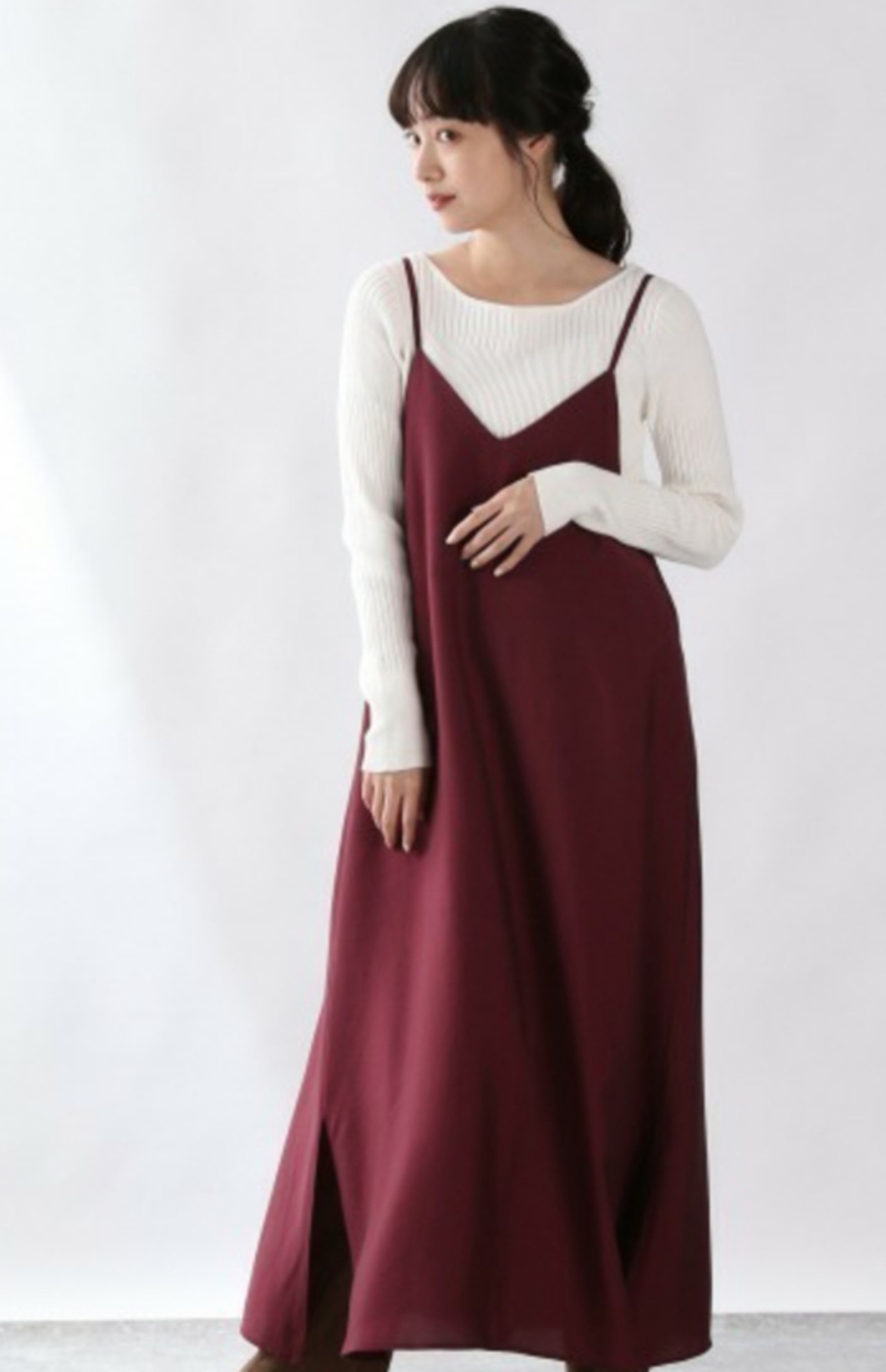 コーデの工夫次第でロングシーズン活躍するキャミワンピです。