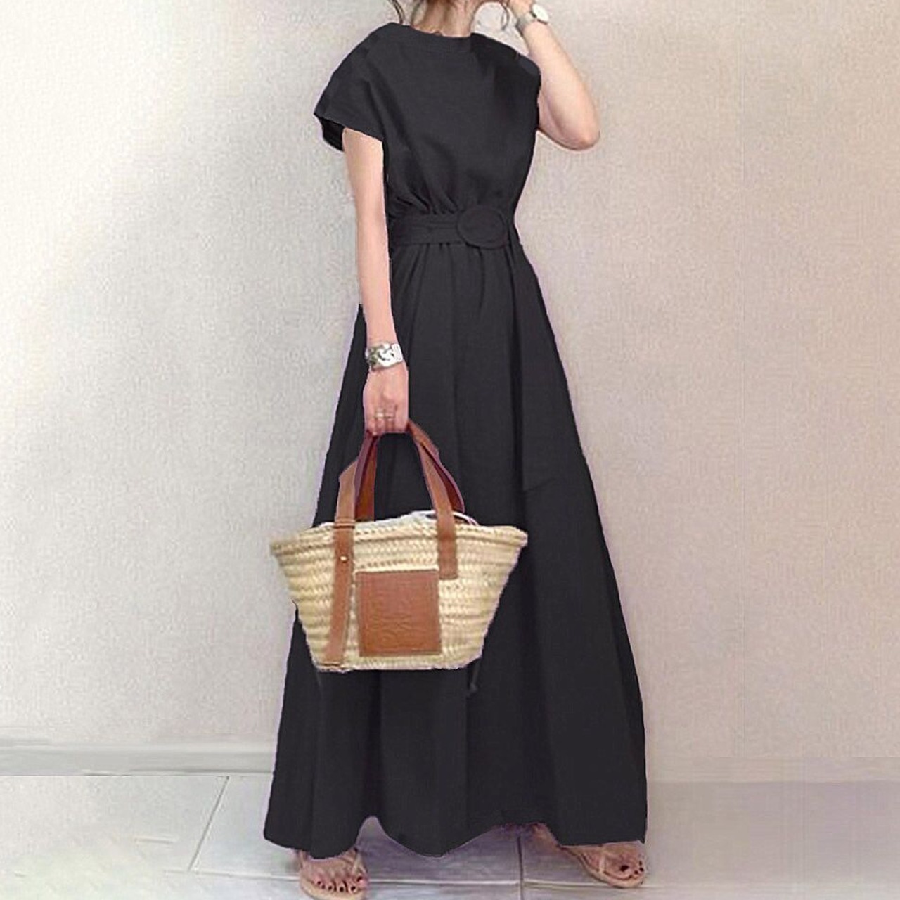 ワンピース Aライン ロング丈 フレンチスリーブ ラウンドネック フレア ベルト ウエストマーク ハイウエスト 無地 大人可愛い きれいめ シンプル 大人 上品 おしゃれ フェミニン さわやか 大人カジュアル 大人女子 こなれ感 存在感 抜け感 ナチュラル ベーシック クラシカル 華やか ロマンティック 春 夏 レディース オフィス ビジネス OL 通勤 学生 通学 デート お出かけ 公園デビュー 女子会 お泊まり 休日 旅行 海 プール ホテル レストラン 着回し 普段使い