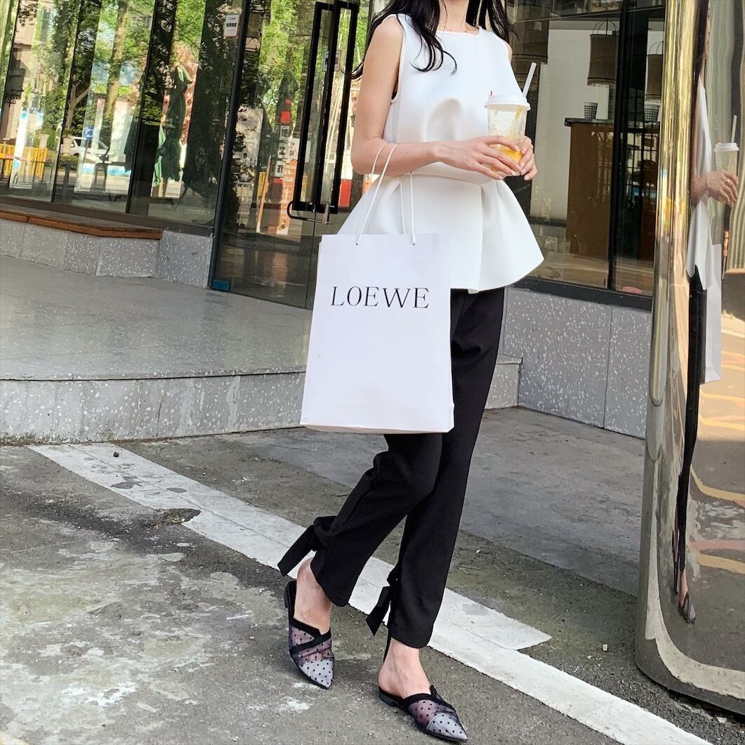 コンパクトなボトムスと合わせることで、大人可愛いコーディネートが完成します。