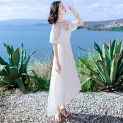 ワンピース 白トップス フレアワンピース ロング ロング丈 袖あり 半袖 フレア セミフレア Aライン レース 大人可愛い カジュアル おしゃれ お洒落 キュート ガーリー 個性的 主役級 存在感 抜け感 春 夏 2022 2023 10代 20代 30代 レディース 女性用 ママ マタニティ お出かけ 休日 パーティー イベント リゾート 旅行 海 プール 高原 モテ インスタ映え S M L 白 ホワイト