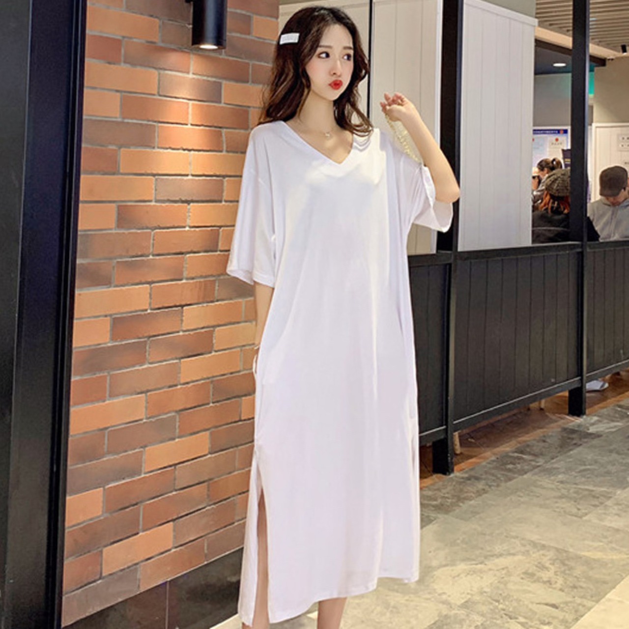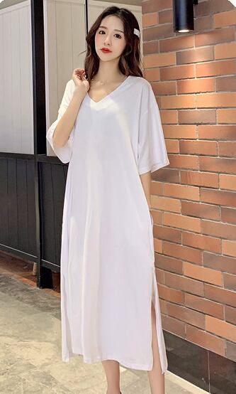 ワンピース 白トップス ミモレ ミモレ丈 ロング ロング丈 袖あり 半袖 Vネック ワイド ウエストマーク サイドスリット シンプル カジュアル 大人 おしゃれ お洒落 かっこいい 大人女子 こなれ感 ラフ メンズライク マニッシュ スポーティー セクシー 無地 春 夏 2022 2023 10代 20代 30代 40代 50代 60代 レディース 女性用 ママ マタニティ お出かけ 休日 アウトドア 重ね着 モテ インスタ映え L XL 2XL 白 ホワイト 黒 ブラック