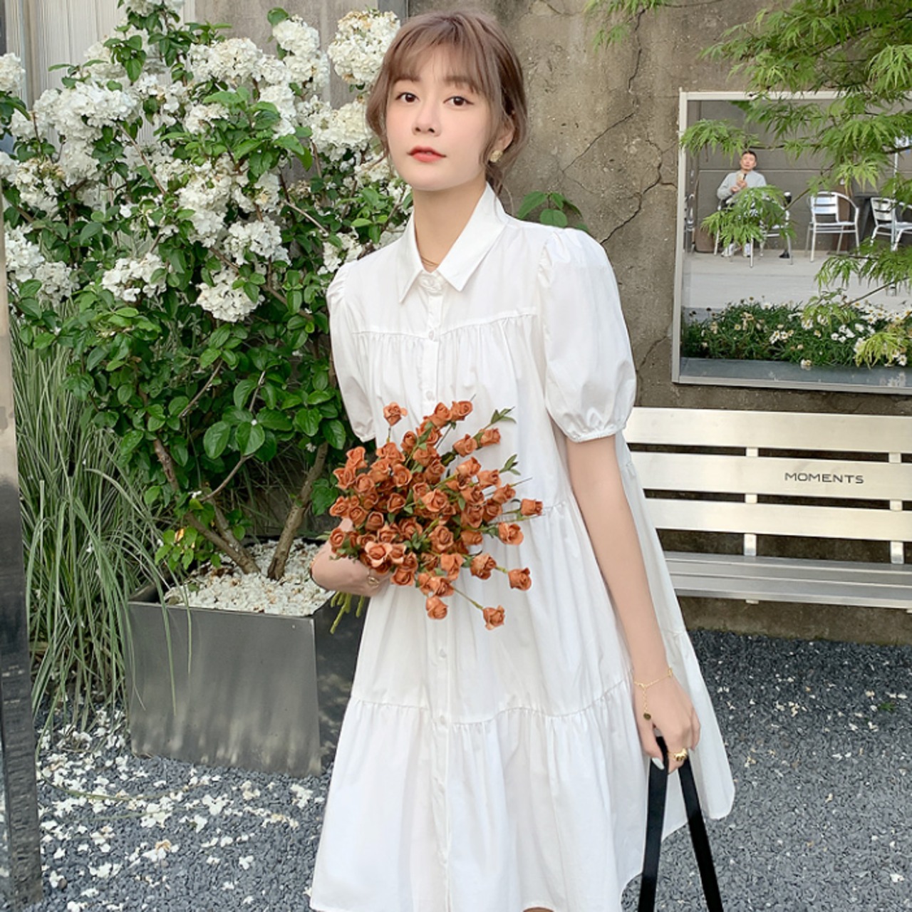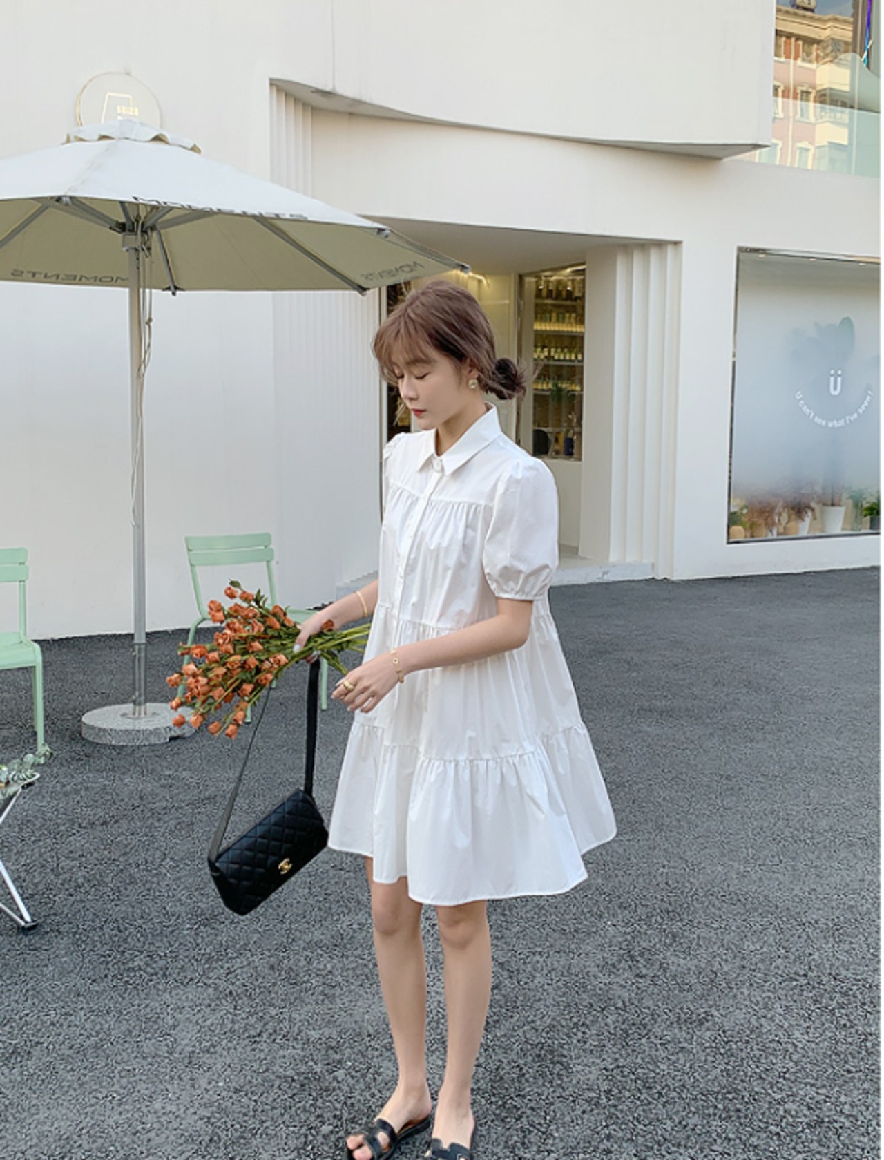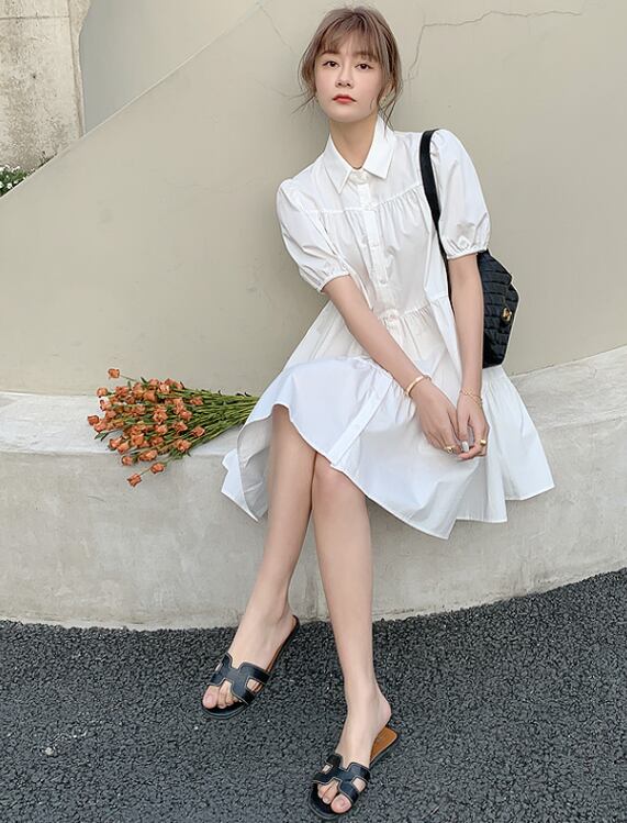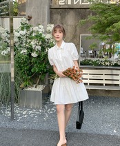 ワンピース 白トップス フレアワンピース ティアードワンピース 膝丈 ひざ丈 膝上 袖あり 半袖 ボリューム袖 パフスリーブ 襟付きフレア セミフレア Aライン 大人可愛い カジュアル おしゃれ お洒落 キュート ガーリー 春 夏 2022 2023 10代 20代 30代 レディース 女性用 ママ マタニティ お出かけ 休日 パーティー イベント リゾート 旅行 海 プール 高原 モテ S M L XL 白 ホワイト