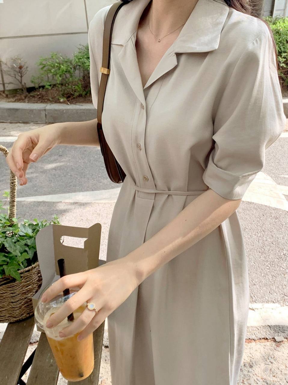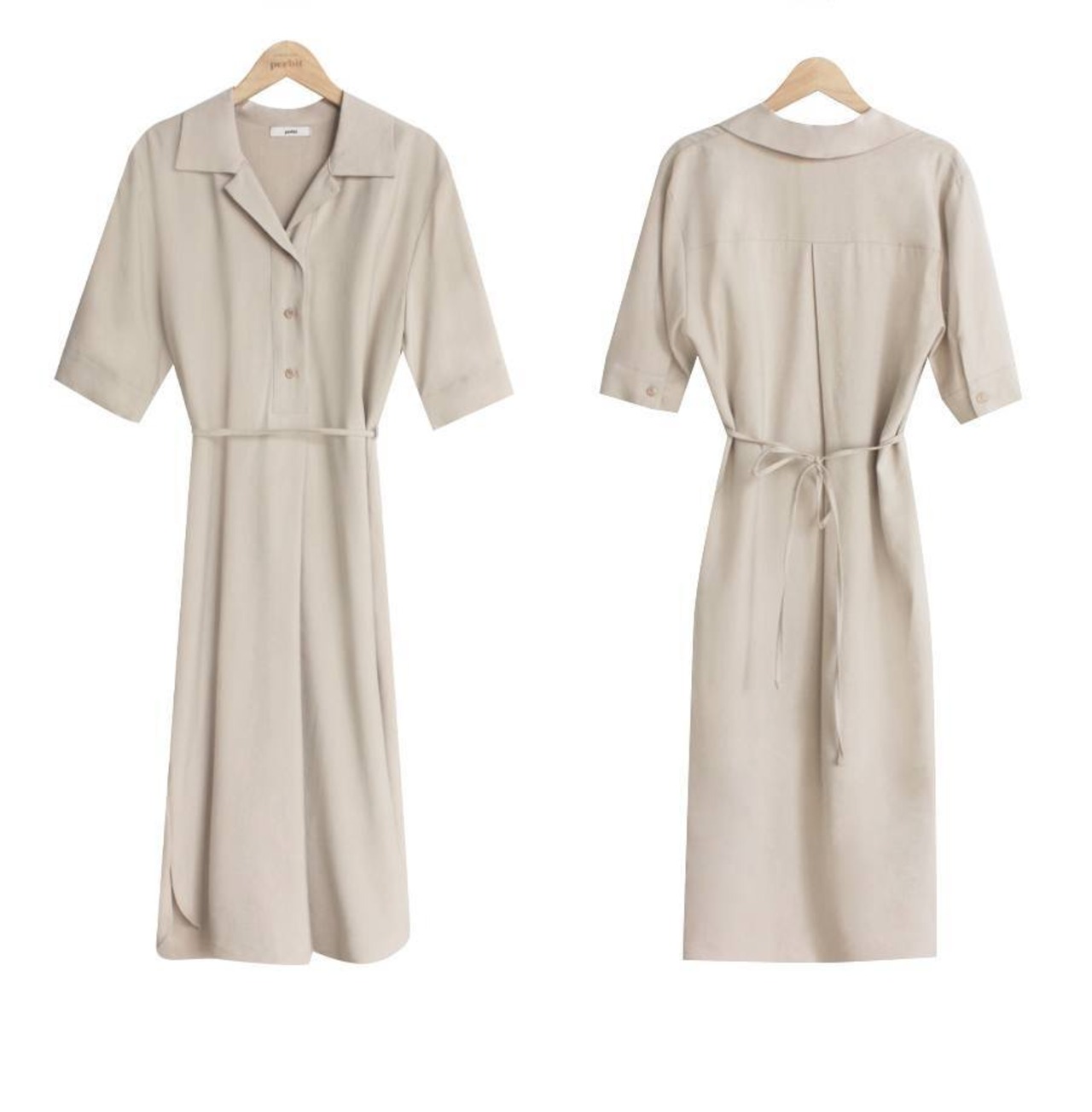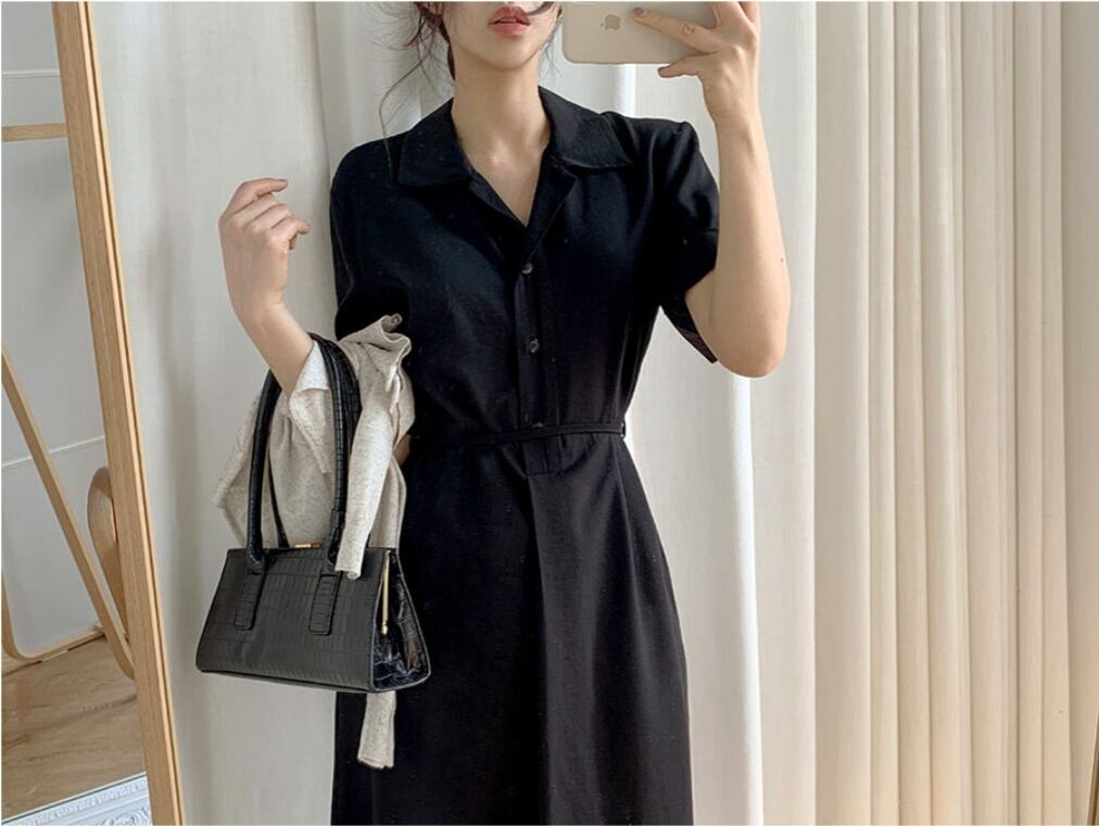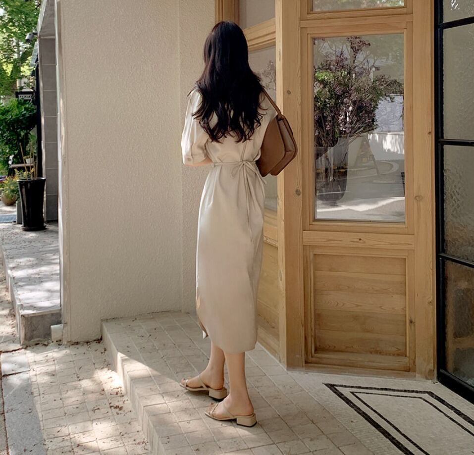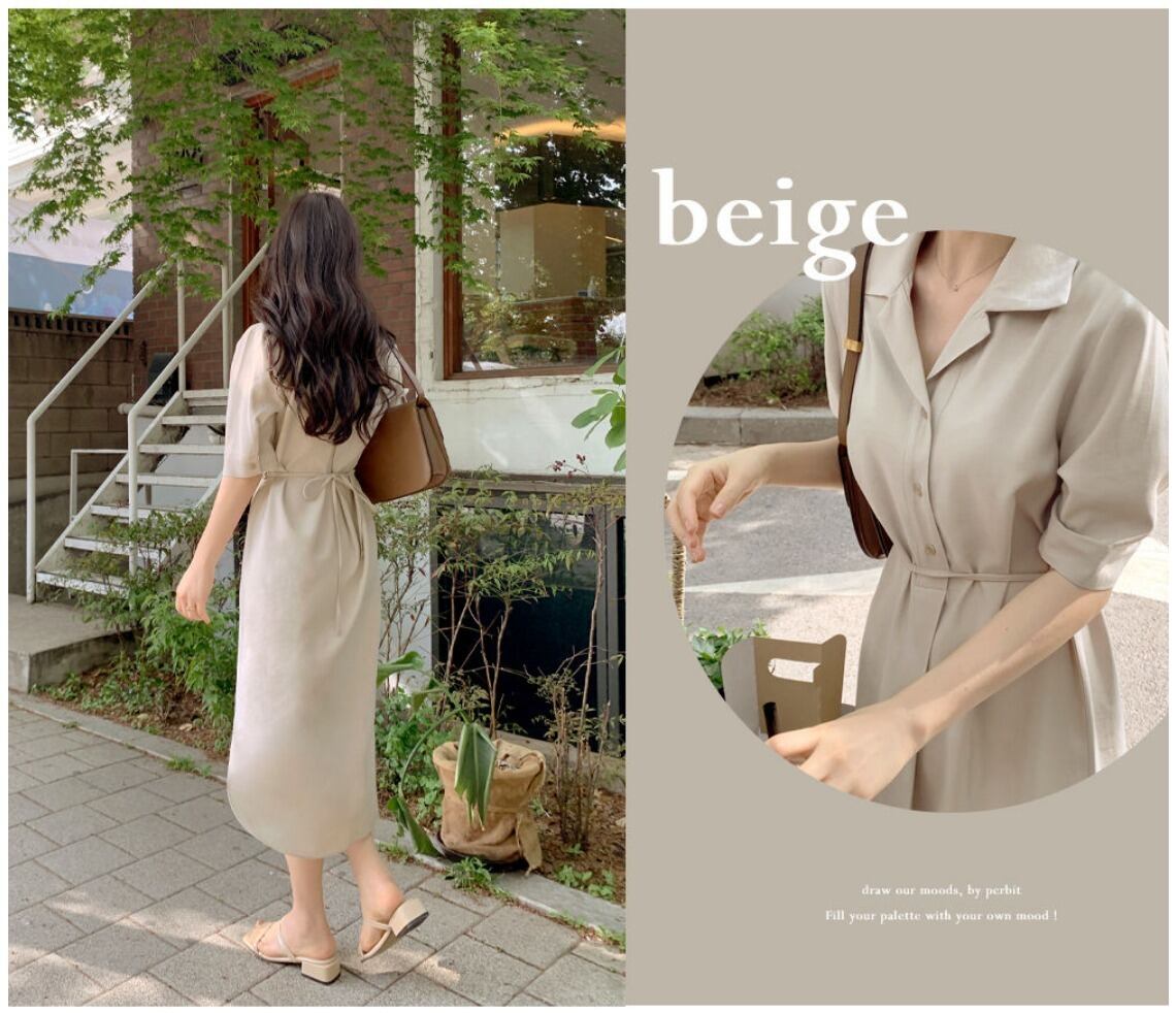 ワンピース シャツワンピース フレアワンピース ミモレ ミモレ丈 ロング ロング丈 袖あり 5分袖 五分袖 Vネック ノッチラペル ショールカラー セミフレア スリム 細身 ウエストマーク ハイウエスト かわいい 大人可愛い きれいめ シンプル カジュアル 大人 上品 おしゃれ お洒落 大人女子 こなれ感 エレガント 抜け感 フェミニン 無地 春 夏 秋 レディース 女性用 学生 通学 デート お出かけ 休日 着回し 普段使い モテ 体系カバー 美脚 脚長 定番 プチプラ ホワイト ブラック ベージュ