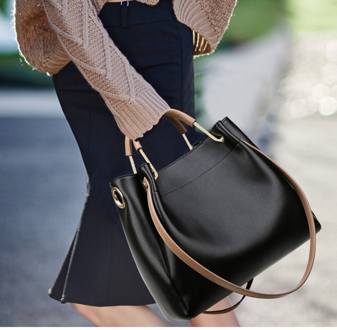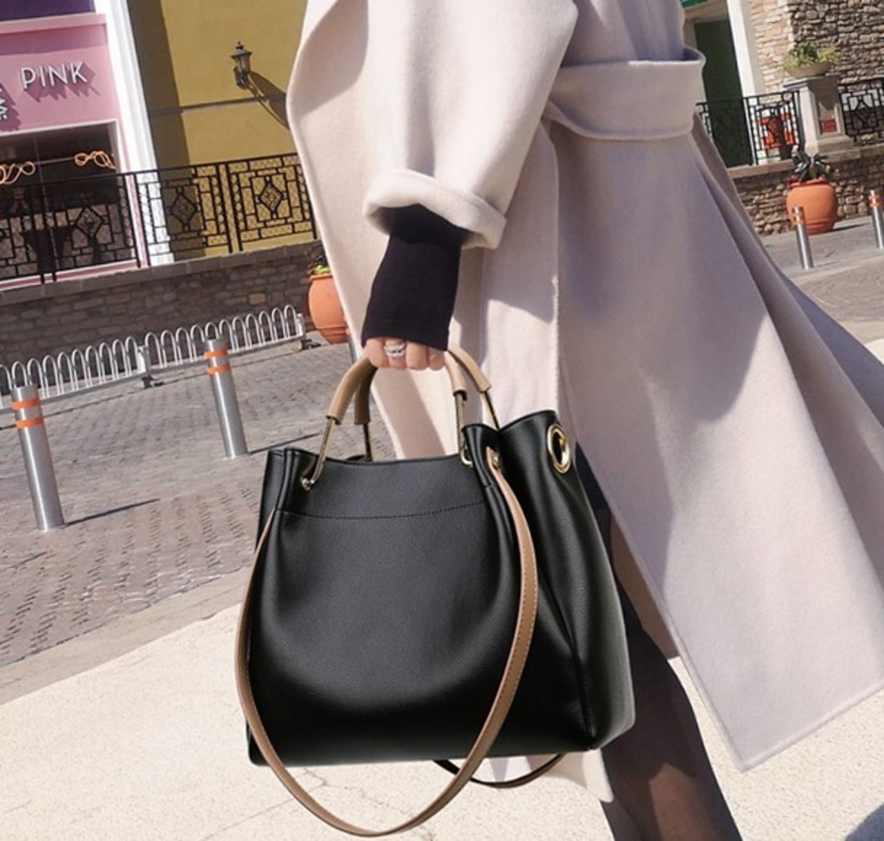 持ち手や金具でシンプルながらもこなれ感のある商品となっています。