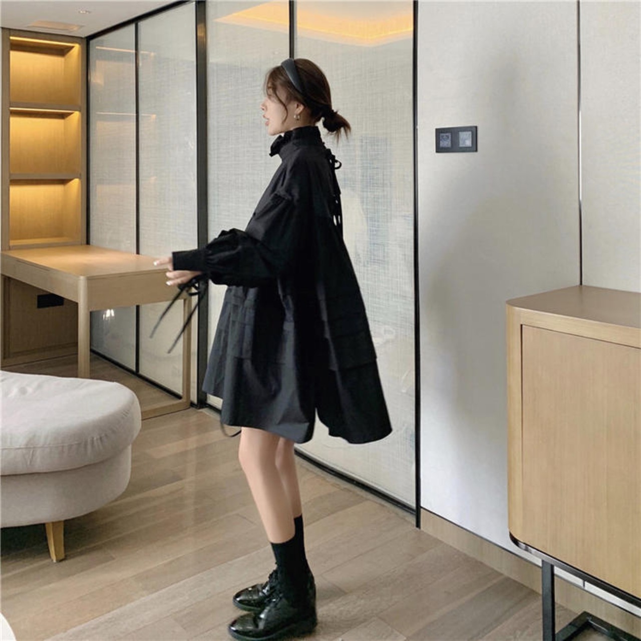 ワンピース シャツワンピース フレアワンピース ティアードワンピース ミニ丈 ショート丈 膝上 袖あり 長袖 ボリューム袖 パフスリーブ ハイネック フレア Aライン 切り替えデザイン バックリボン 切り替えデザイン かわいい 大人可愛い 大人 おしゃれ お洒落 ラブリー キュート ガーリー 個性的 存在感 抜け感 無地 オールシーズン シーズンレス 10代 20代 レディース 女性用 デート お出かけ 女子会 お泊まり 休日 旅行 ホテル ガーデン レストラン フリーサイズ 白 ホワイト 黒 ブラック