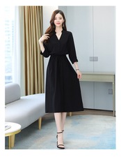大人っぽく上品なミモレ丈のシャツワンピースです。
