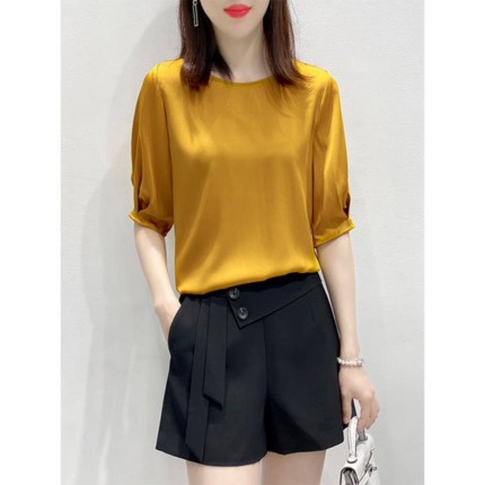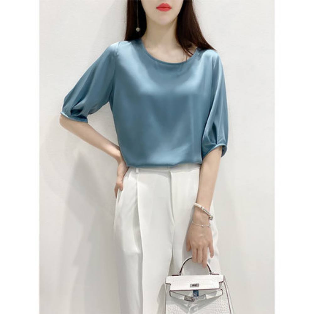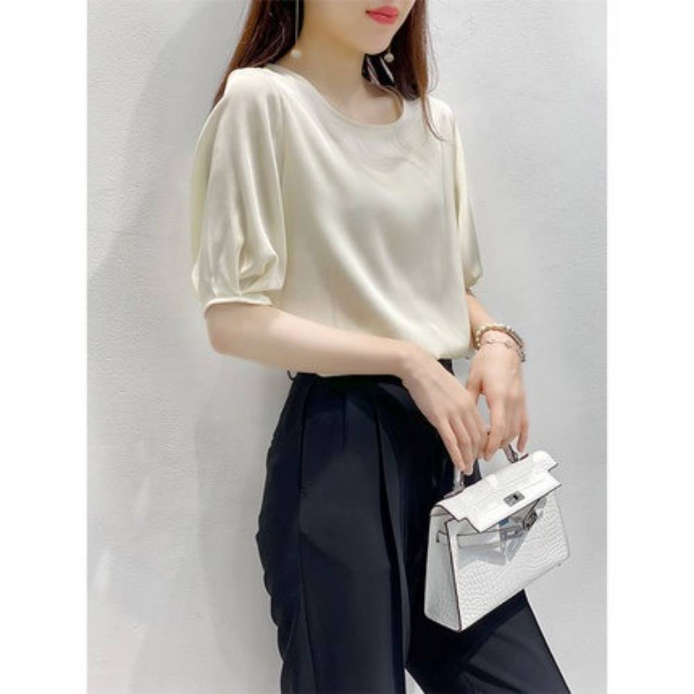 トップス Tシャツ シャツ ブラウス カットソー プルオーバー 白シャツ 白トップス 袖あり 5分袖 五分袖 パフスリーブ ラウンドネック 大人可愛い きれいめ シンプル カジュアル 大人 上品 おしゃれ お洒落 大人女子 こなれ感 ラフ クール エレガント モダン とろみ感 抜け感 フェミニン 無地 春 夏 20代 30代 40代 50代 60代 レディース 女性用 OL 通勤 学生 通学 デート お出かけ 女子会 休日 着回し 普段使い S M L XL 2XL 3XL