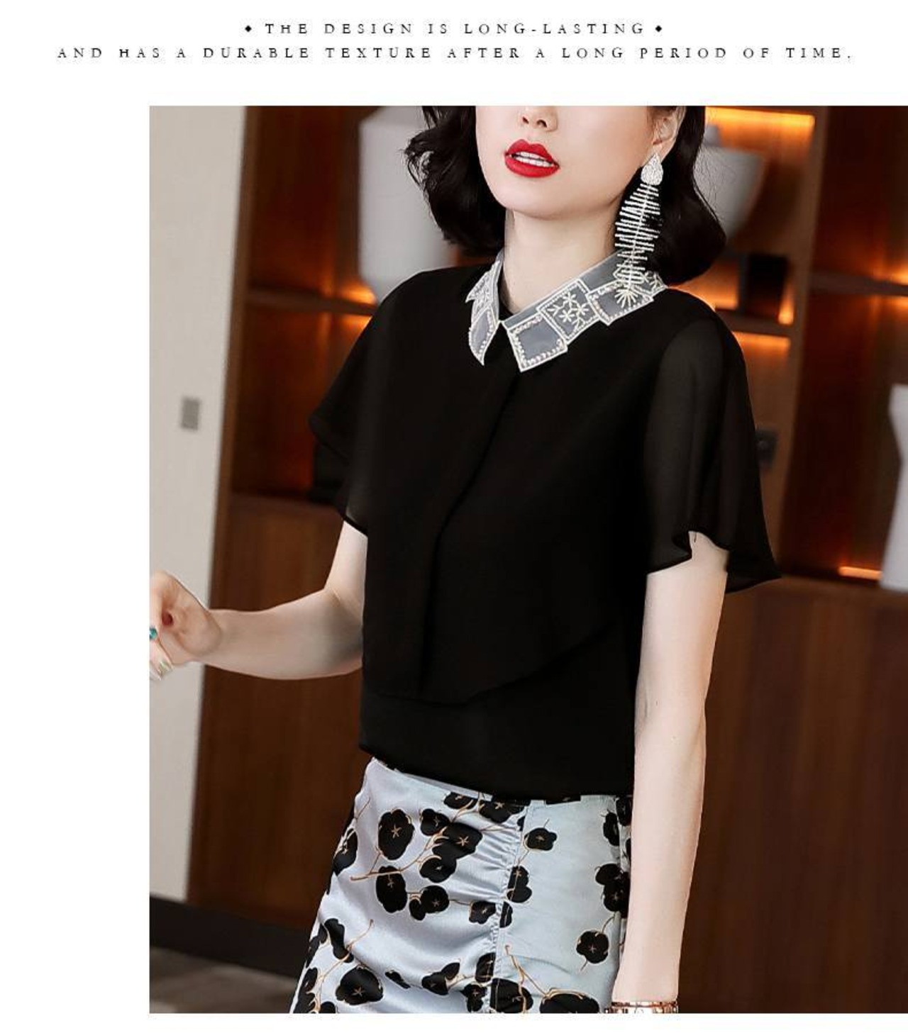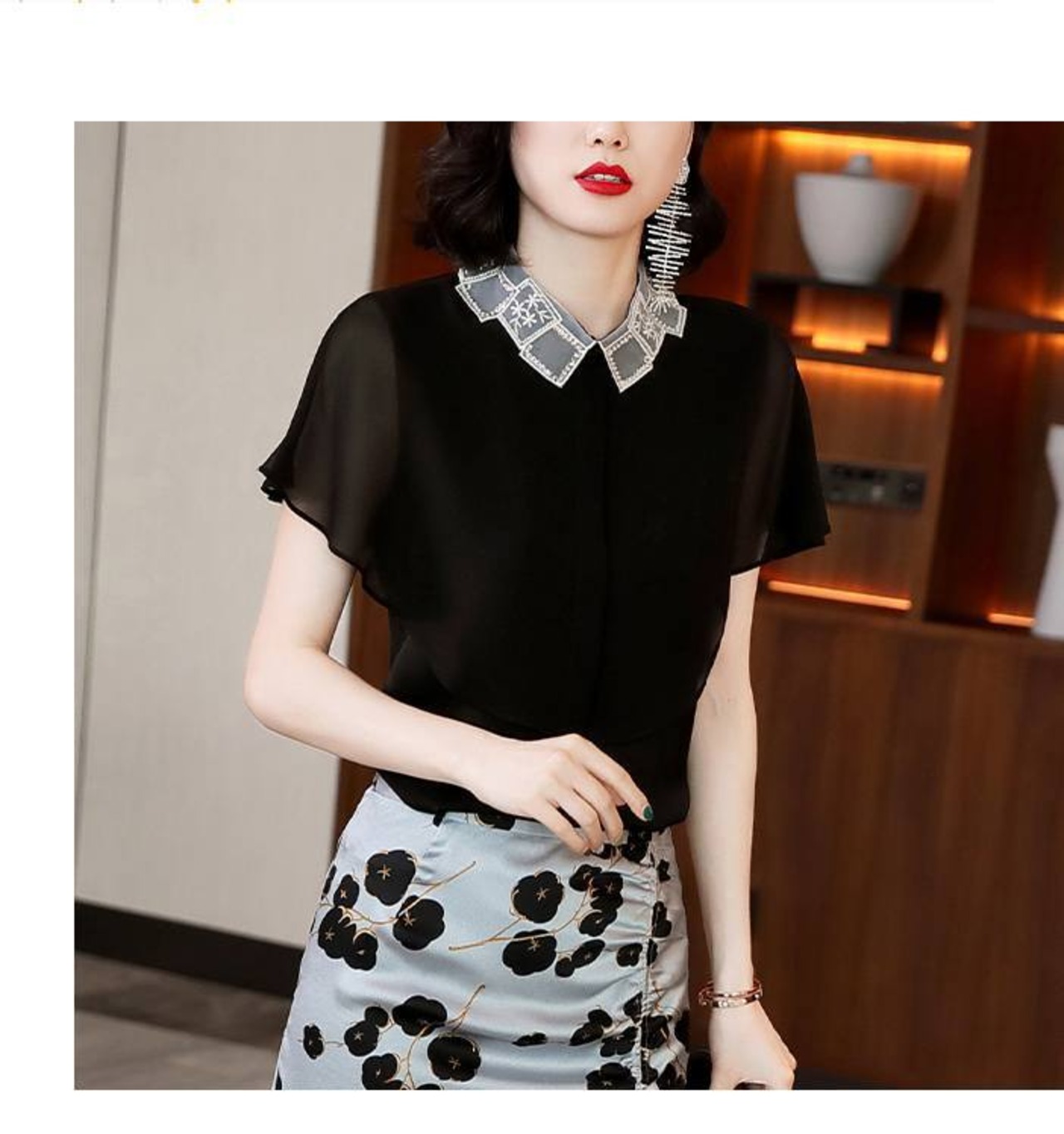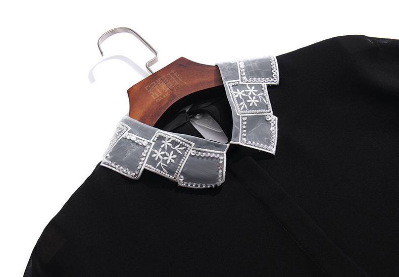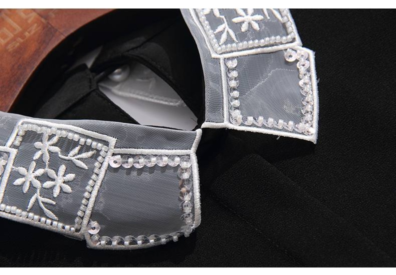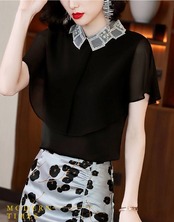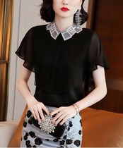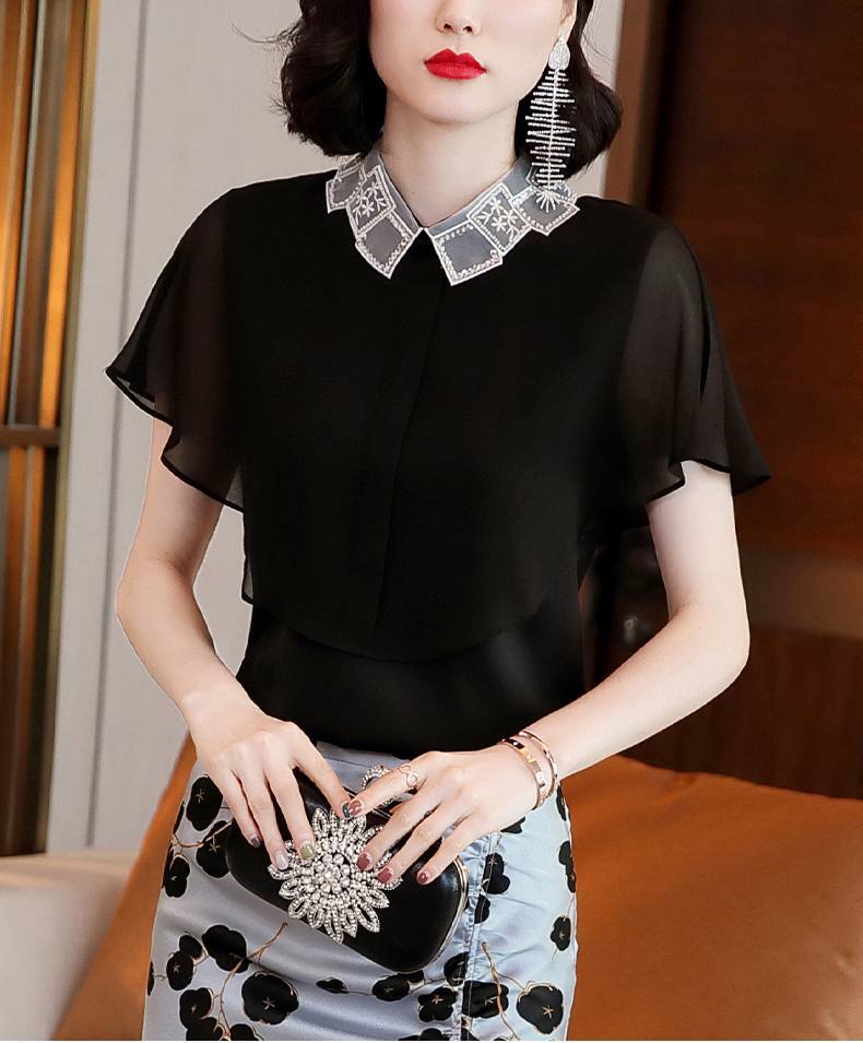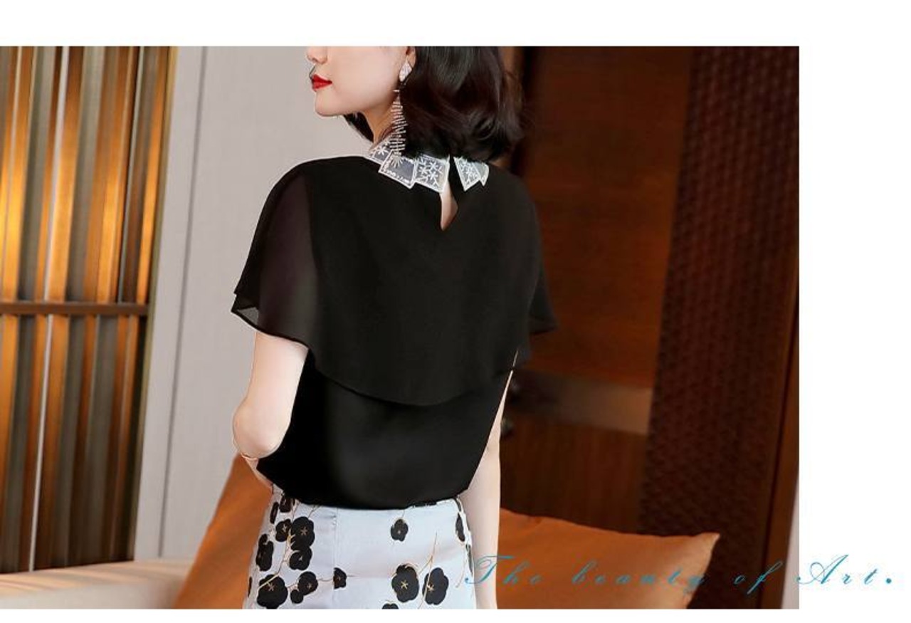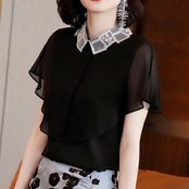 トップス シャツ ブラウス 袖あり 半袖 フレアスリーブ 襟付き スタンダードカラー レース シフォン スパンコール ポリエステル かわいい 大人可愛い きれいめ シンプル カジュアル 大人 上品 おしゃれ お洒落 大人女子 こなれ感 ガーリー エレガント 抜け感 フェミニン 無地 春 夏 20代 30代 40代 50代 レディース 女性用 学生 通学 デート お出かけ 女子会 休日 着回し 普段使い モテ プレゼント ギフト 定番 S M L XL 2XL 黒 ブラック
